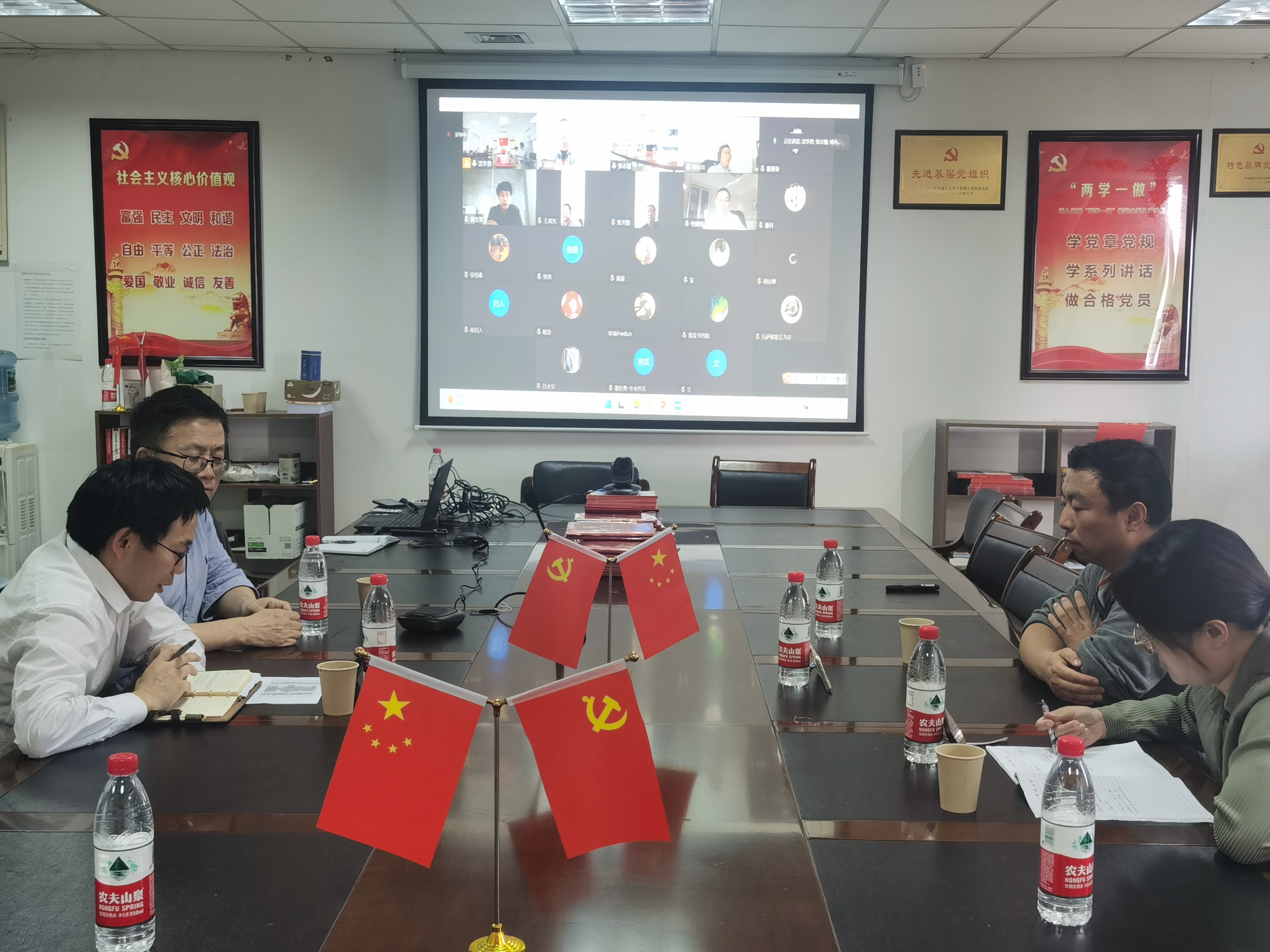 首先,陈根浪向与会的20余位政府部门、各行各业的专家表示感谢和欢迎,随后简单介绍了硕士点的进展情况。之后,两个学院与与会的行业教师进行了线上聘任仪式,庞超逸院长发表致辞,第一是对本次线上聘任仪式表示致歉,希望之后有机会能邀请各位专家多来学校合作交流;第二,对参会的专家表达了真挚的感谢,十分感谢专家们大力支持硕士点工作的推进能够成为行业教师,同时也欢迎各位专家多多指导培养学生,沟通交流传授各行各业宝贵的行业经验。