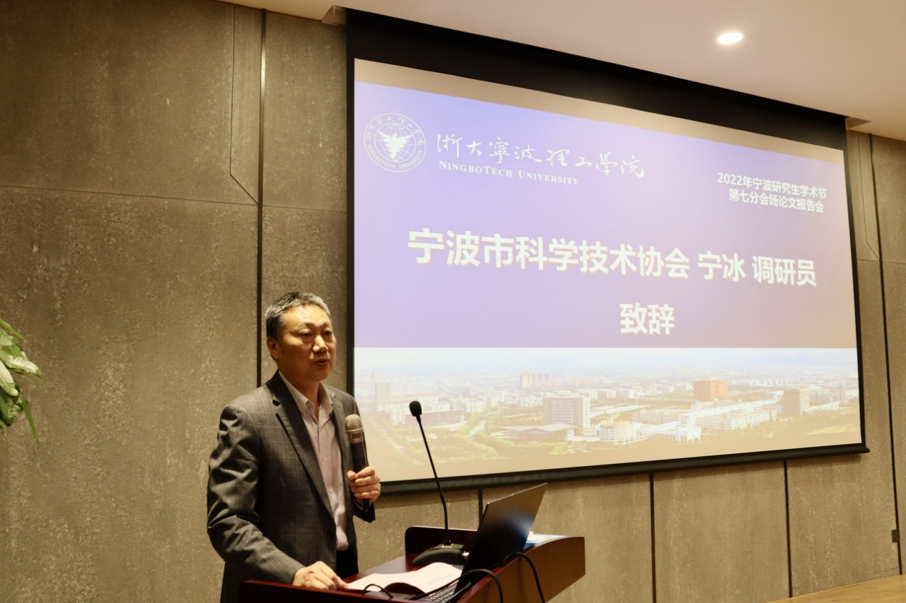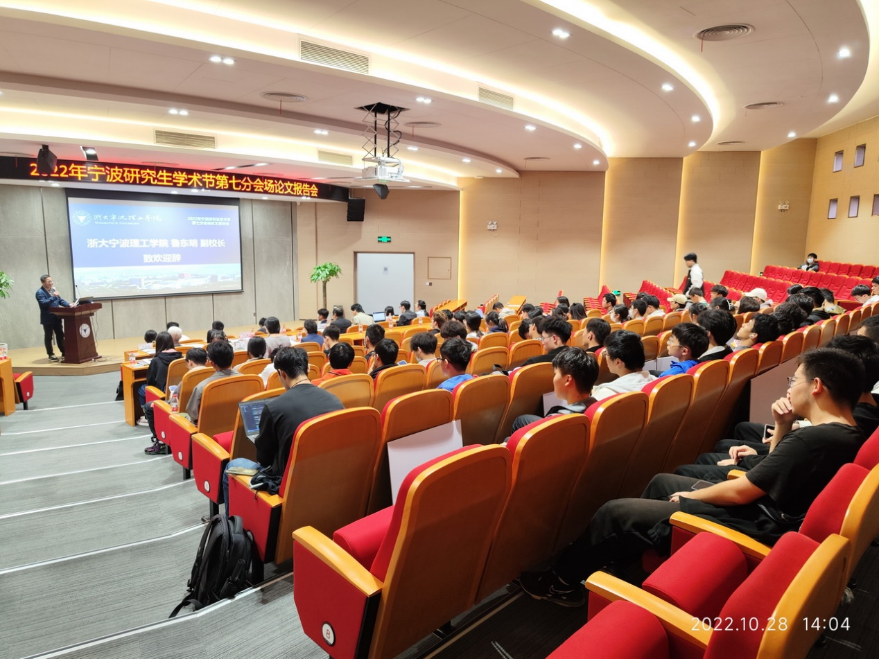 10月28日下午,2022年宁波研究生学术节第七分会场论文报告会在我校NF103启新大讲堂举行。宁波市科学技术协会调研员宁冰、副校长鲁东明、校研究生处处长陈洁云、校科研处副处长、校科协秘书于在河、校学生处副处长王成等出席,参加活动的还有宁波大学、宁波工程学院和我校的评审专家、研究生工作负责人以及研究生、本科生代表80余人。