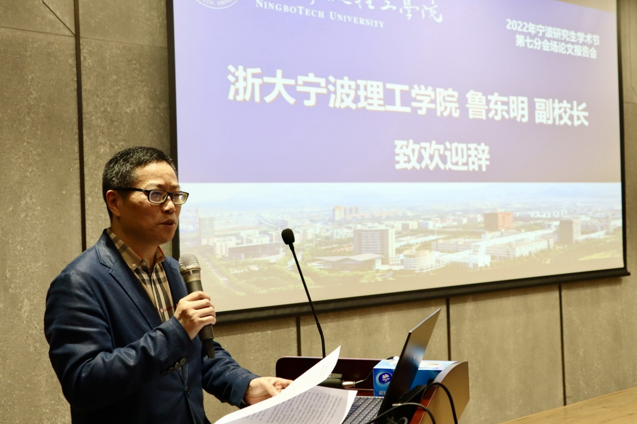 副校长鲁东明在致辞中对各位嘉宾、评委的莅临表示热烈欢迎,对市科协、市社科联及学术节组委会的支持表示感谢。他简要介绍了我校的发展历程、取得成果、研究生培养等情况,指出目前学校迎来了转型提升的历史机遇期,“立足宁波,依托浙大,放眼全球”,坚决贯彻党的二十大精神,正以开放包容的理念瞄准建设“省内一流、全国百强”高水平创新性应用型大学的目标奋力前行,同时也希望在甬高校研究生以本次学术节活动为契机,创新彰显活力,为宁波打造“全球智造创新之都”,为浙江建设“全球先进智造业基地”和“全球数字变革高地”贡献自己的力量。