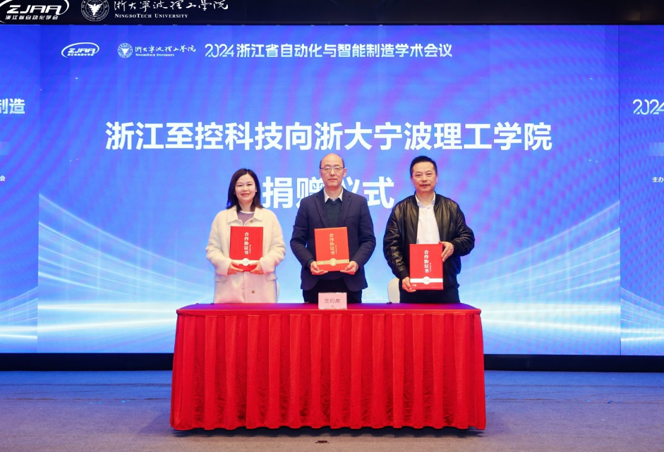 随后,浙江至控科技有限公司与浙大宁波理工学院进行了战略合作签约暨PLC设备捐赠仪式,标志着双方将在党建共建、科技创新、人才培养等方面开展更深层次的合作。