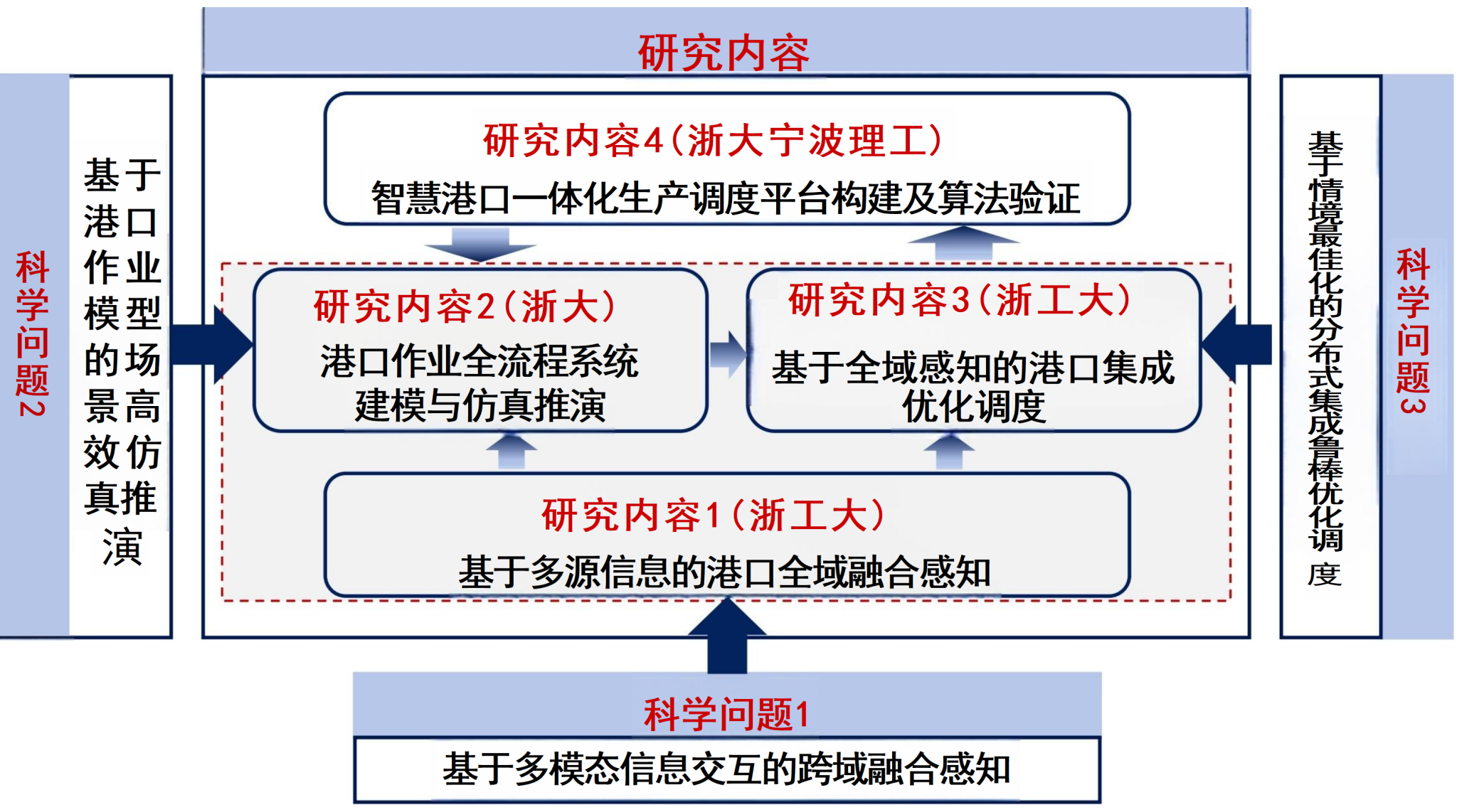 据了解该项目首先针对多域互联的港口复杂系统,解决适用于感知信息多源异构和传感器异步采样下非线性系统的多速率分布式融合估计问题。其次,针对港口大规模、多设备、高耦合的特性,基于“数据+机理”双驱动的思想构建并行仿真推演的可配置数字孪生系统。再次,针对港口生产调度系统作业流程多、随机因素多的问题,基于全域感知与数字孪生模型设计面向智慧港口生产作业流程的集成鲁棒优化调度策略。最后,构建智慧港口一体化生产调度平台验证所提方法的有效性,形成一套面向智慧港口的生产调度系统全域感知和数据模型双驱动优化决策方法。