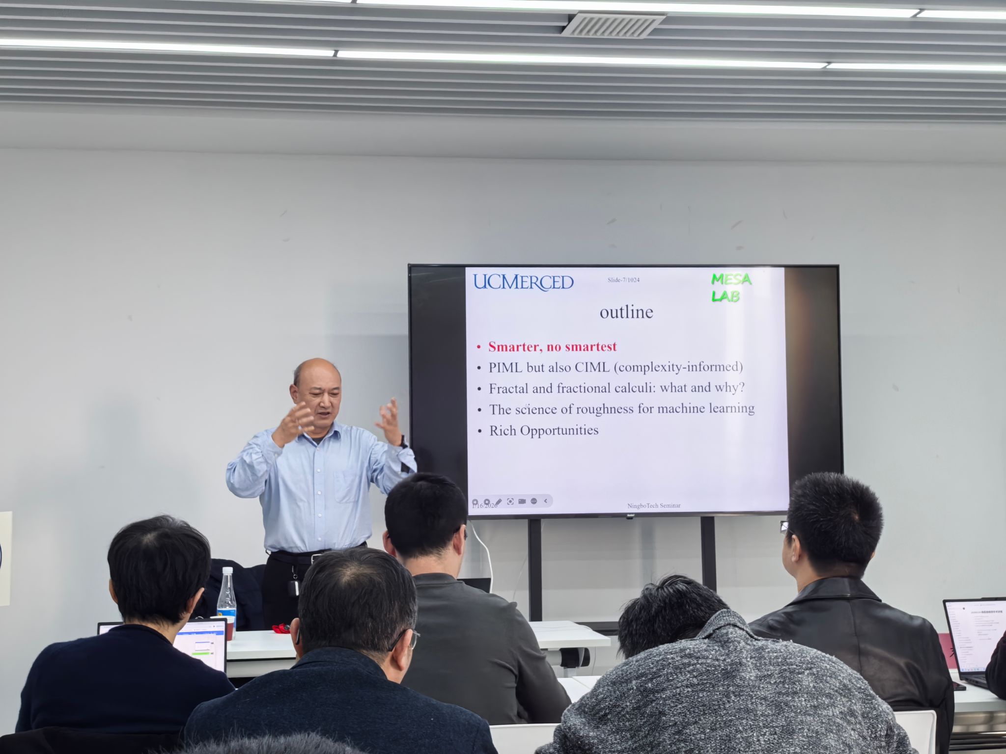 陈教授长期深耕机电一体化、嵌入式系统与自动化领域,拥有极高的学术造诣,在相关研究领域极具影响力。讲座中, 围绕“如何让机器学习更智能”这一核心命题,陈教授系统阐述了五大核心方向:从追求“更智能而非最智能”的理念出发,提出在物理信息机器学习(PIML)基础上,需融入复杂性感知机器学习(CIML);深入解析分形与分数阶微积分的理论基础与应用价值,强调其在复杂系统建模、信号处理、优化控制等方面的独特优势;阐释粗糙度科学在机器学习中的关键作用,指出损失函数 landscape 的粗糙性、分形特性等复杂特征需得到充分重视;并展望了粗糙度量化、不确定性量化等领域的丰富研究机遇。