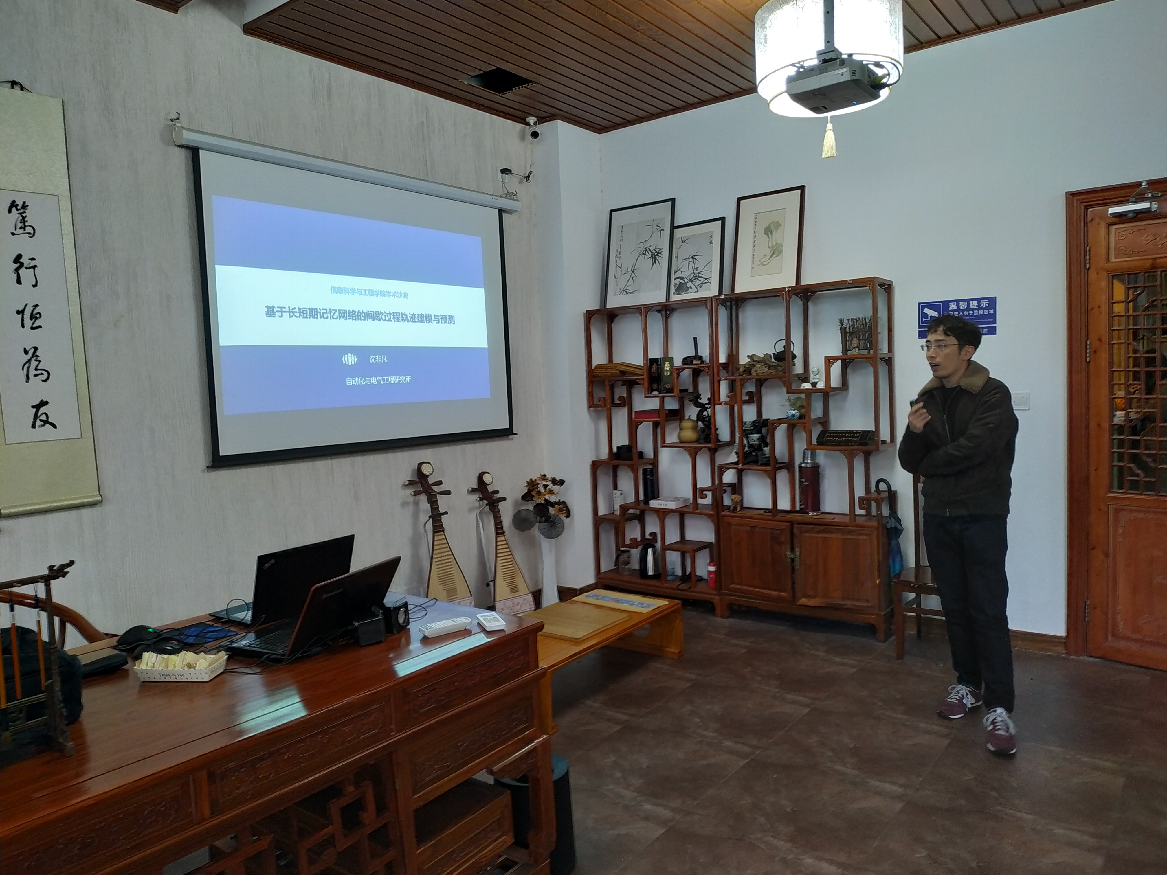 沈非凡博士报告的题目是《基于长短期记忆网络的间歇过程轨迹建模与预测》,报告中,沈非凡博士从研究背景、方法介绍与应用、研究进展、总结与展望四个方面对本次报告的内容进行了详细汇报,从基于数据驱动的过程建模、间歇过程机器特点、过程检测及其意义阐述了轨迹建模与预测的必要性,然后从间歇过程数据展开策略、基于长短期以及网络的轨迹预测、产品质量预报与监测几个方面介绍了主要的研究方法和应用范围,最后介绍了该研究领域的最新进展。与会的各位老师就报告中感兴趣的问题一起进行了交流与探讨。