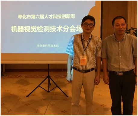 9月27日,信息学院胡超、王一刚和科研处副处长于在河参加了奉化市第六届人才科技创新周活动。对宁波成为中国制造2025的试点城市的建设,特别对机器视觉技术应用进行了研讨。胡超教授作了“机器换人”与机器视觉工业零部件检测技术”的报告,介绍了“机器换人”和机器视觉的意义和内容。通过机器视觉在“汽车轮毂识别分拣系统”和“汽车油泵导杆尺寸自动检测分拣系统”等具体案例,阐述了机器视觉在工业过程零部件检测中的作用和进展。会议中还与奉化的多家相关企业进行了深入的技术交流,并达成了进一步的合作意向。