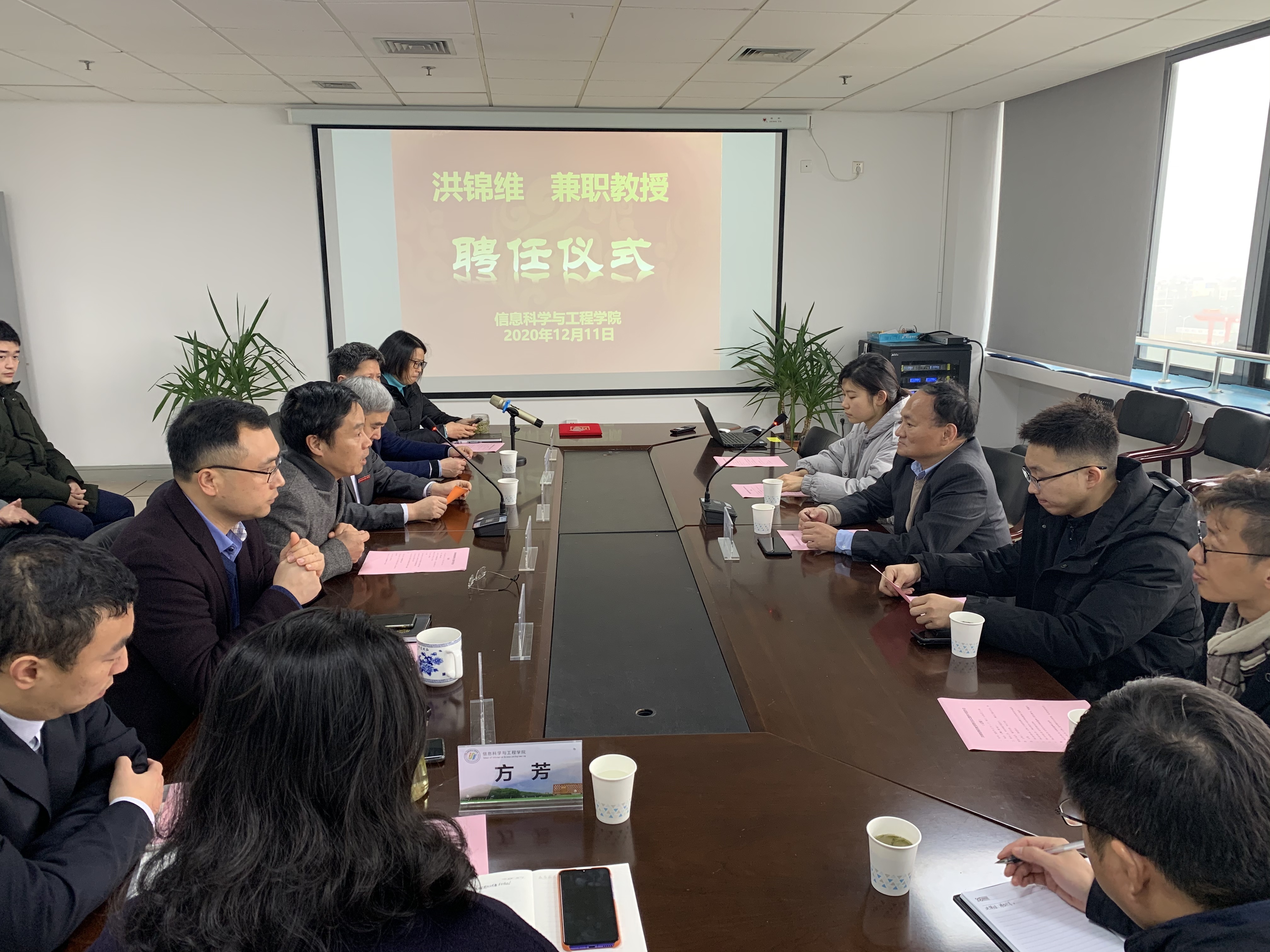 2020年12月11日,洪锦维兼职教授聘任仪式暨学术报告会在石麟9楼会议室举行,学校副校长章献民,人事处处长王高合,学院班子成员,教师代表和学生代表参加了本次报告会。会议由黄进院长主持。