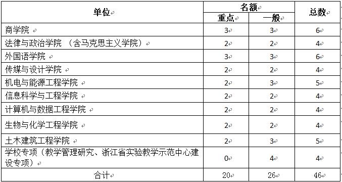根据教务部通知精神,信息学院项目名额为4项,其中重点项目2项,资助经费为每项1万元;一般项目2项,资助经费为每项0.5万元。教务部关于教研项目名额具体分配如下: