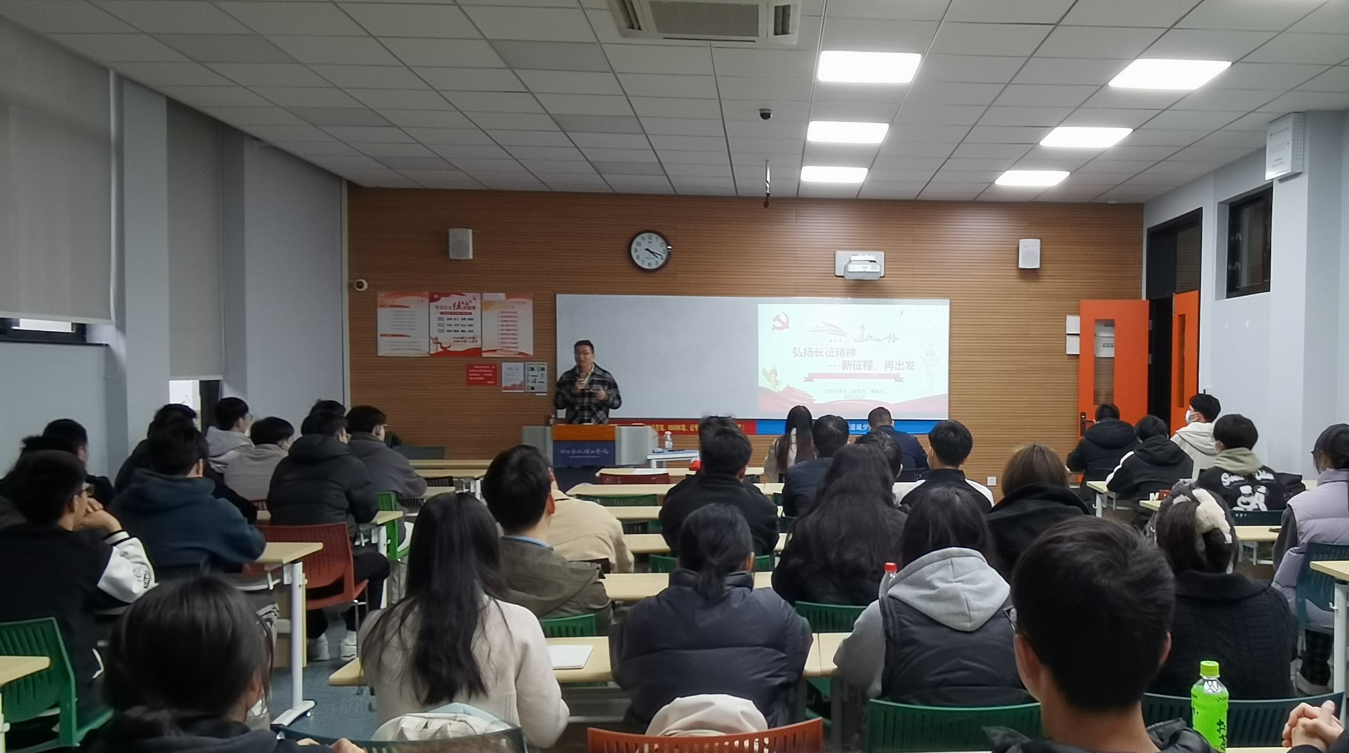 信电学生党支部黄振彪老师以“弘扬长征精神,新征程再出发”为题,围绕战争先锋、和平楷模、身边榜样三个不同时期的典型人物或群体展开,讲述不同时期不同人物故事,从故事中引导党员同学们学习他们身上展现出的长征精神。黄老师强调,一代人有一代人的梦想,一代人有一代人的“长征”,长征精神需要更多的年轻人去传承和践行。他呼吁在座的党员同学,作为新时代的追梦人,大学生奔走在新时代的长征路,应该朝气蓬勃,努力奋进。