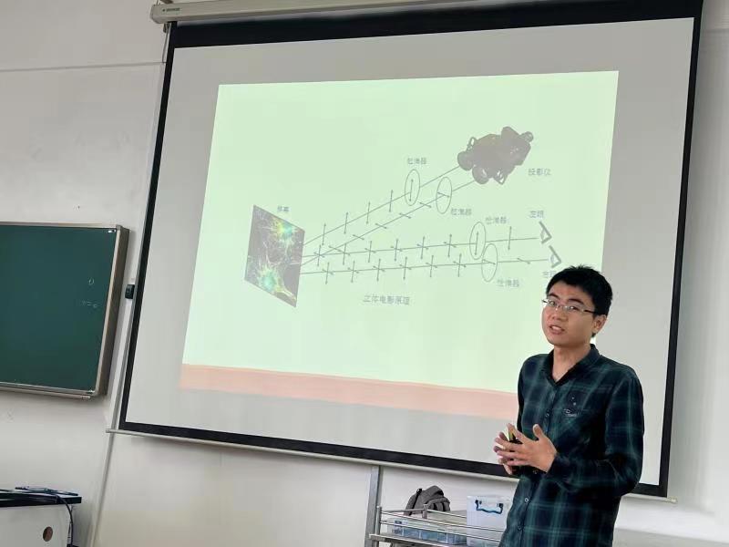 光,常见如太阳光,你想过自己动手做出一束光吗?信息学院潘一铭博士首先给孩子们讲述了物理中的光学及偏振的知识,从生活中的案例出发——晚上开车如何避免对面车道的强光,凭借生动的讲解及有趣的实验,牢牢地把孩子们吸引在课堂上。