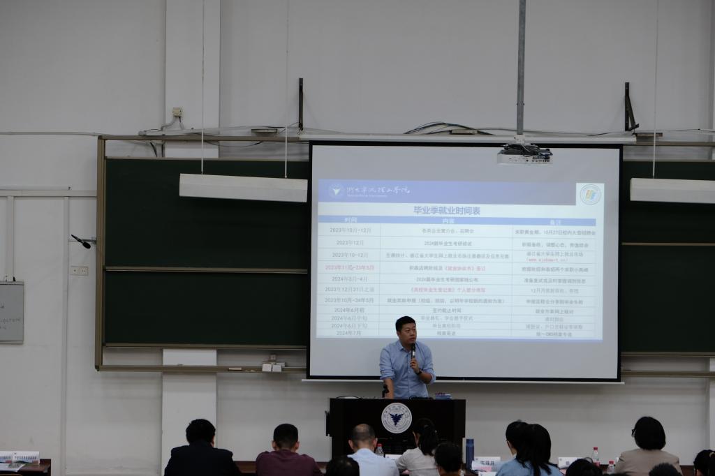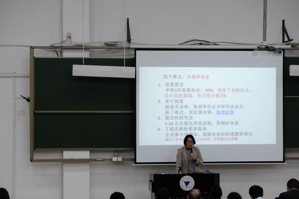 学院副院长陶吉利重点介绍了毕业设计安排,从毕业设计查重、抽查、答辩等方面对毕业生们提出了明确的要求。