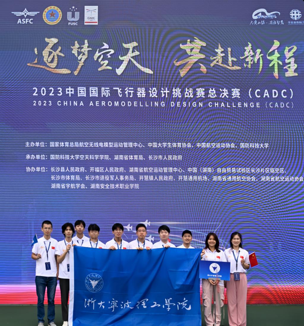 浙大宁波理工学院组队于10月14日在湖南长沙参加2023中国国际飞行器设计挑战赛总决赛暨科研类全国航空航天模型锦标赛。该赛事由体育总局航管中心、中国大学生体育协会、中国航空运动协会、国防科技大学举办,汇集了来自国防科技大学、西北工业大学、哈尔滨工业大学、南京航空航天大学、北京航天航空大学、中山大学等81所知名学校的近1500名顶级选手一同“逐梦空天、共赴新程”。