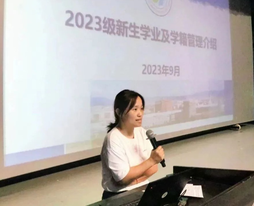 教务办钟伟红老师,学工办董俊娜老师从人才培养方案、学生选课、学业相关要求、校规校纪等详细讲解学籍管理规定,让同学们明晰学习目的,掌握选课、学业要求、学分替换、考场规则等“生存法则”,时刻自省。