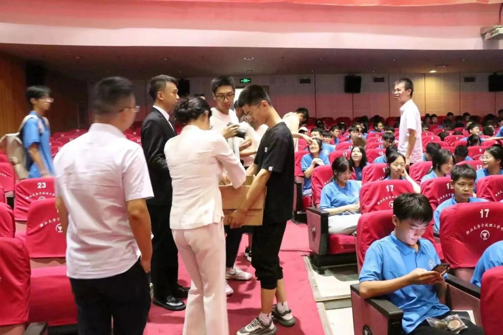 大会的最后,学院领导、班导师和辅导员一起为同学发放定制的月饼,祝福各位同学们中秋国庆双节快乐。