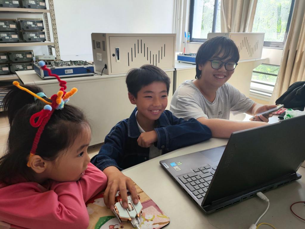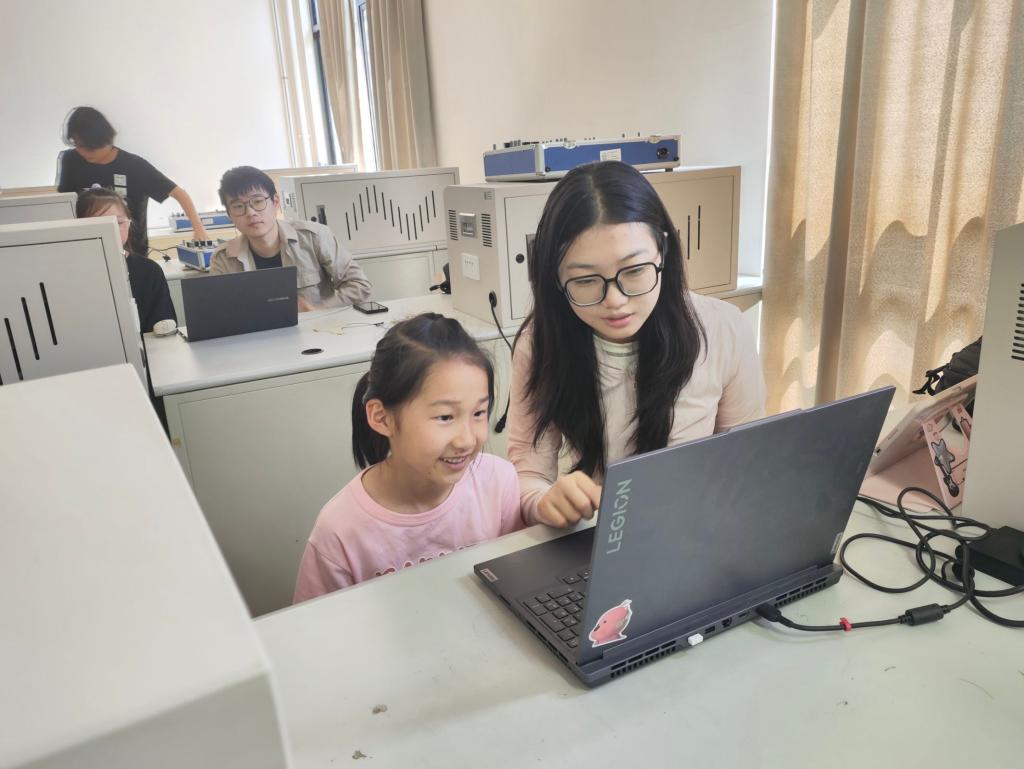 此次研学活动由学院电子创客社团承办,电工电子物理基础教学中心负责人吴飞青教授亲自授课,活动选取趣味性强的物理小实验,通过一对一志愿者协助下,小朋友们最终完成电路连接并使彩灯亮起。在吴飞青教授通俗易懂的讲解下,孩子们既了解到简单的物理知识,又体验到物理实验带来的乐趣,现场互动氛围良好。
