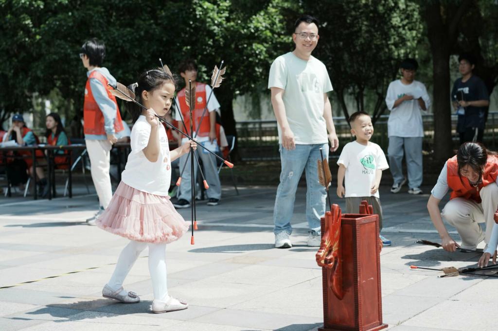 为丰富校友返校活动,同时搭建校友与在校生互动平台,学院组织了一场校友、在校生共同参与的趣味游园会活动。游园会共设置芯方向——心之所向(蒙眼走直线)、芯精准——投石问路(投壶)、芯速度——极速三十秒(跳短绳)、芯协调——摸石头过河(赛跑)、芯坚持——坚持向上 (跳长绳)等六个系列活动,同时还为校友们提供了精美打卡卡片,以供师生与校友们共同留念。活动新颖、形式多样,吸引了众多校友、在校生参与其中。校友们携“宁理二代”一起投壶、摸石头过河,既获得游戏体验,又进一步增进了亲子关系。