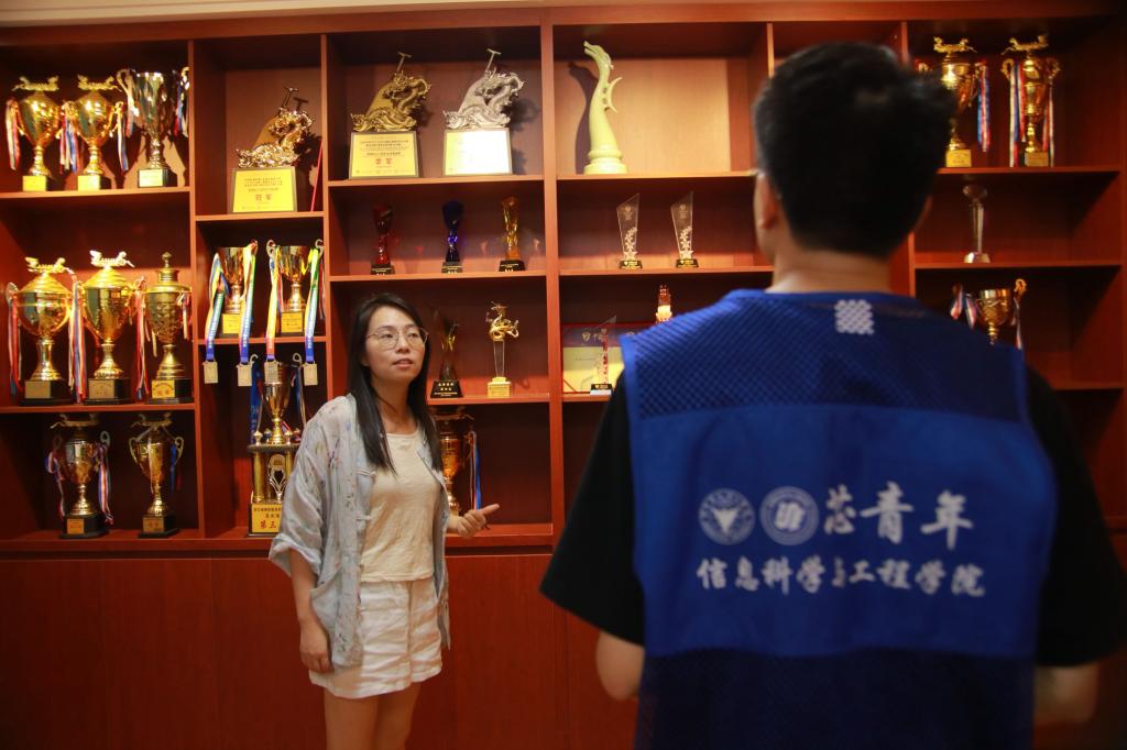 首先,采访队伍来到云龙镇龙舟陈列馆,文化员陈玲玲细致地讲解了云龙镇龙舟文化如何从最初的几艘龙舟发展到如今整个浩大的龙舟文化。她从入职开始就一直从事文化工作,在这四年里,也见证了云龙镇龙舟文化的快速发展,参观龙舟生活馆的人员数量的增加,也展现人民对龙舟文化的重视与认同。她还告诉队员们,正如龙舟是一项多人合作的运动,龙舟文化的发扬也离不开每个人的努力,应当做好龙舟文化的传承,将其根植于精神内核。