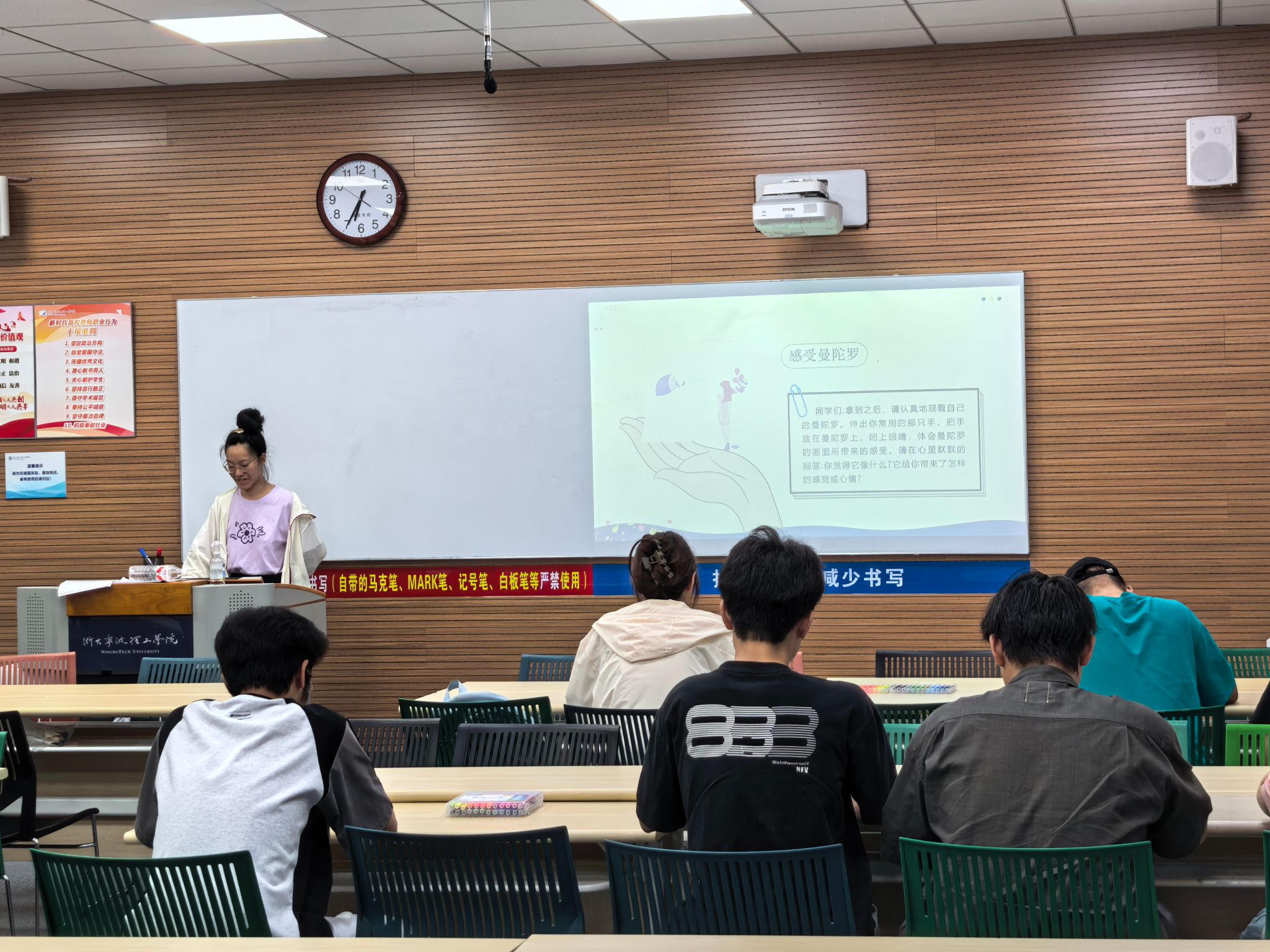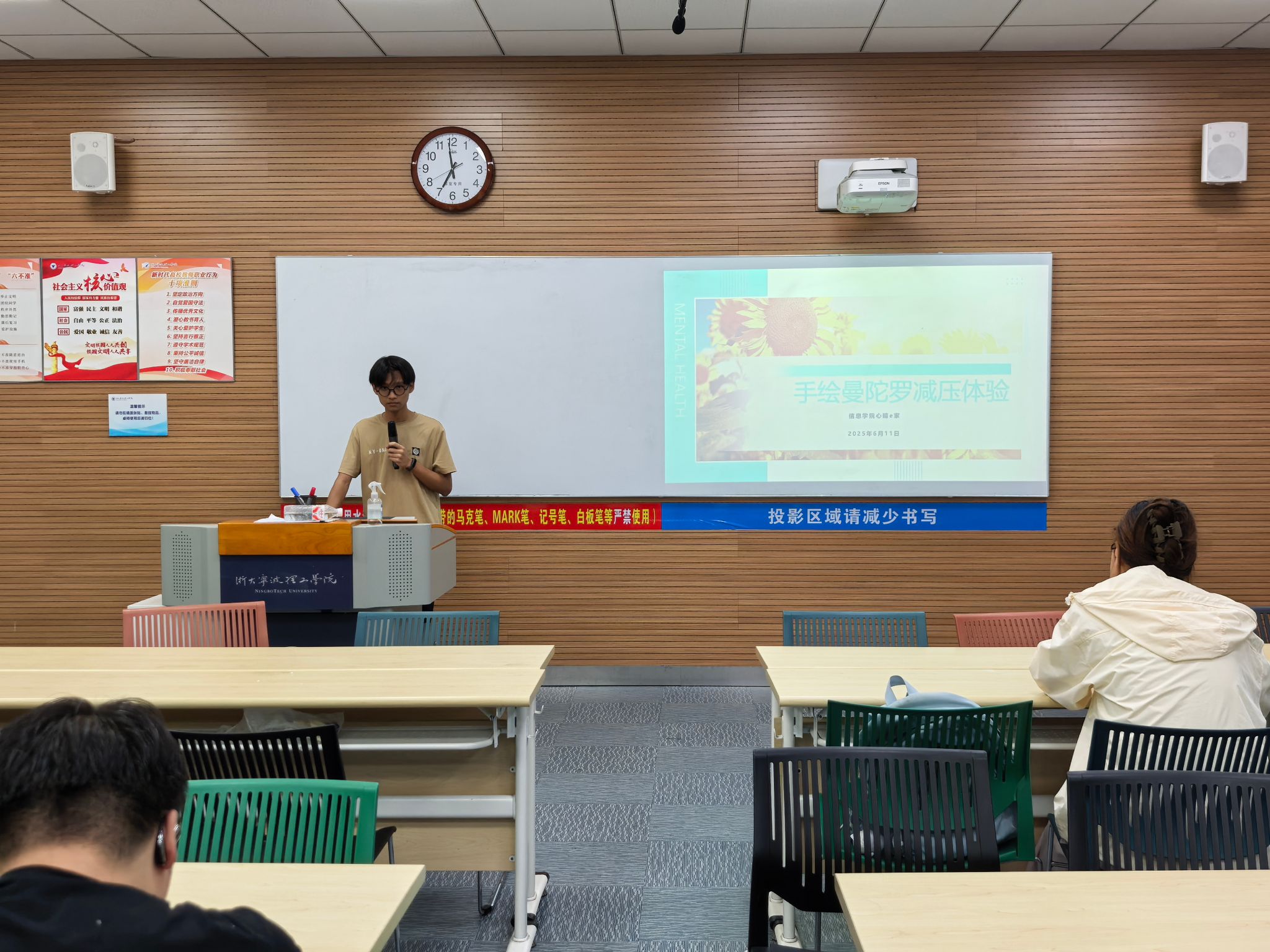 为有效缓解学生期末备考压力,营造积极健康的心理氛围,我校于6月11日在NB110智慧教室成功举办“笔尖上的宁静——手绘曼陀罗减”期末主题减压活动。本次活动由校学生处心理健康教育与咨询中心和信息学院“心晴e家”辅导站精心策划组织,帮助学生在专注的色彩涂抹中寻获片刻心灵休憩。