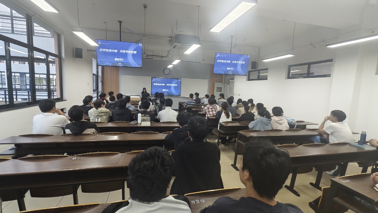 为有效应对校园电信网络诈骗高发态势,提升学生安全防范意识,我院芯青年宣讲队于10月19日-10月29日面向大一至大三全体班级,成功开展了一系列全覆盖、多轮次的反诈主题宣讲活动,累计覆盖学生近千人次,在同学中掀起了学习反诈知识、提高辨别能力的热潮。
