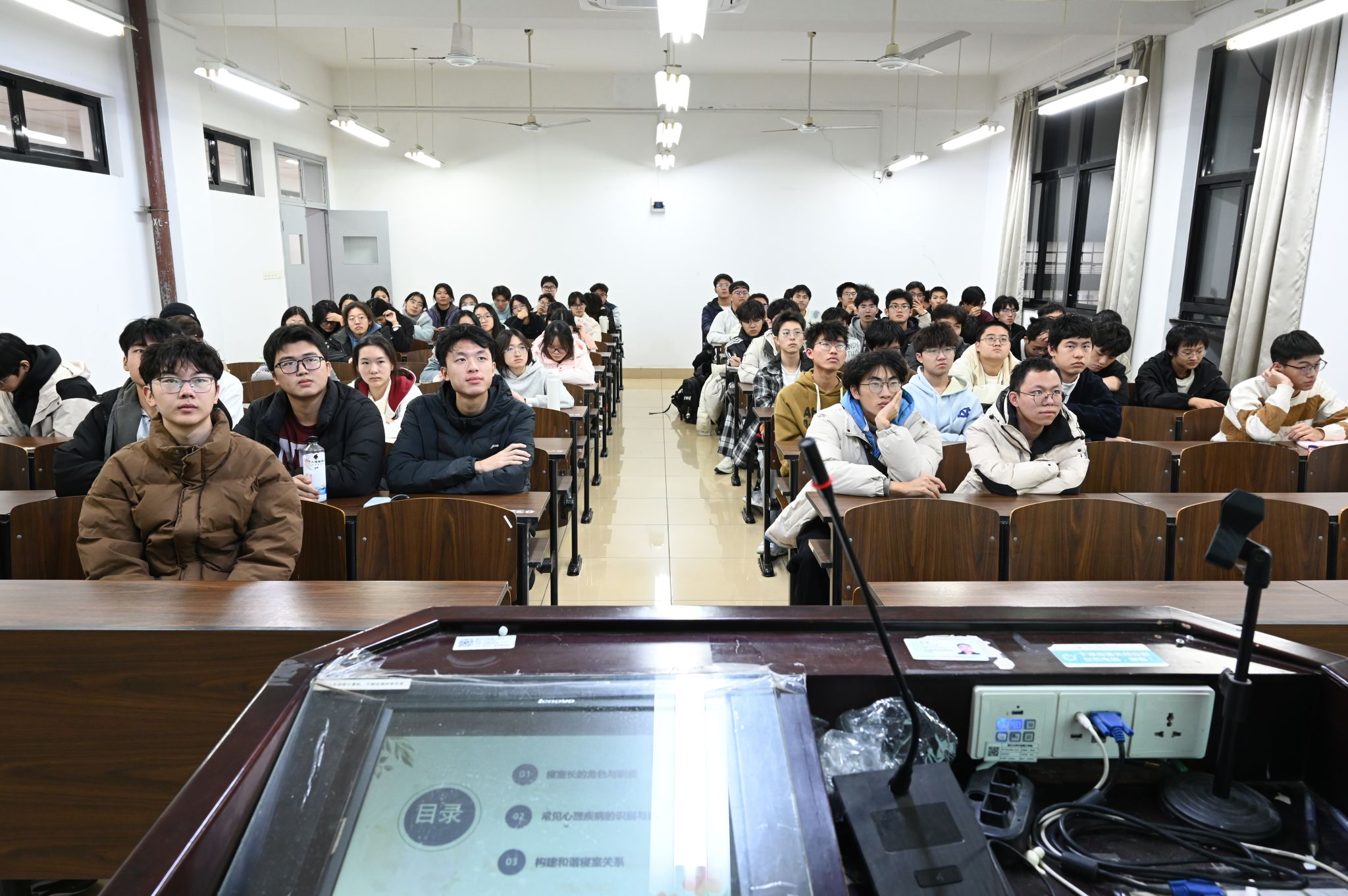 为强化2025级寝室长心理护航职责,提升其心理问题识别与处理能力,充分发挥寝室长在大学生心理健康教育工作中的重要作用,12月8日,信息学院心晴e家辅导站于NB421教室成功举办寝室长心理助人能力提升专题培训。本次培训以“助人自助,相伴成长---寝室长心理支持技能提升指南”为主题,2025级各寝室长参加本次培训。