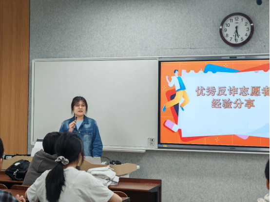 最后,徐老师对近期反诈志愿者工作进行详细部署,提醒志愿者们要先将各个诈骗类型内化于心,以此可以更好地用自己的见解、想法和语言将每一种诈骗类型生动形象地讲出来给班级同学们听,让同学们深深记住各种典型案例,提升反诈效果。并且明确四个“一”工作要求,进一步压实班级宣传责任链条,规范反诈工作流程,确保宣传全覆盖、无死角。希望各位志愿者利用课余时间,主动在相关公众号、抖音账号搜集最新诈骗案例,及时分享给班级同学,推动防骗行动日常化、反诈提醒常态化,协助学院做好诈骗线索排查和预警劝阻工作,切实履行好“反诈宣传员”“安全守护者”的职责。