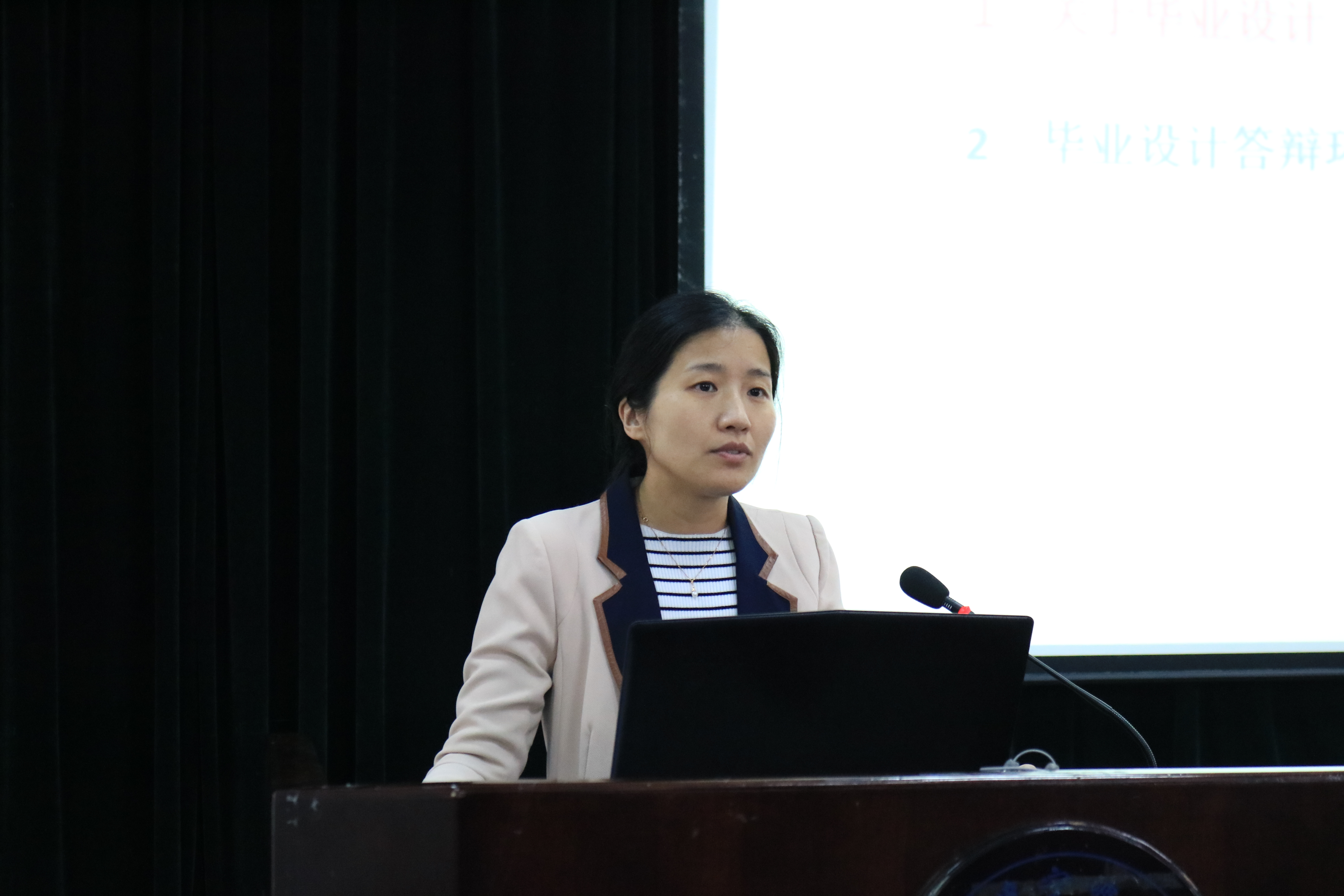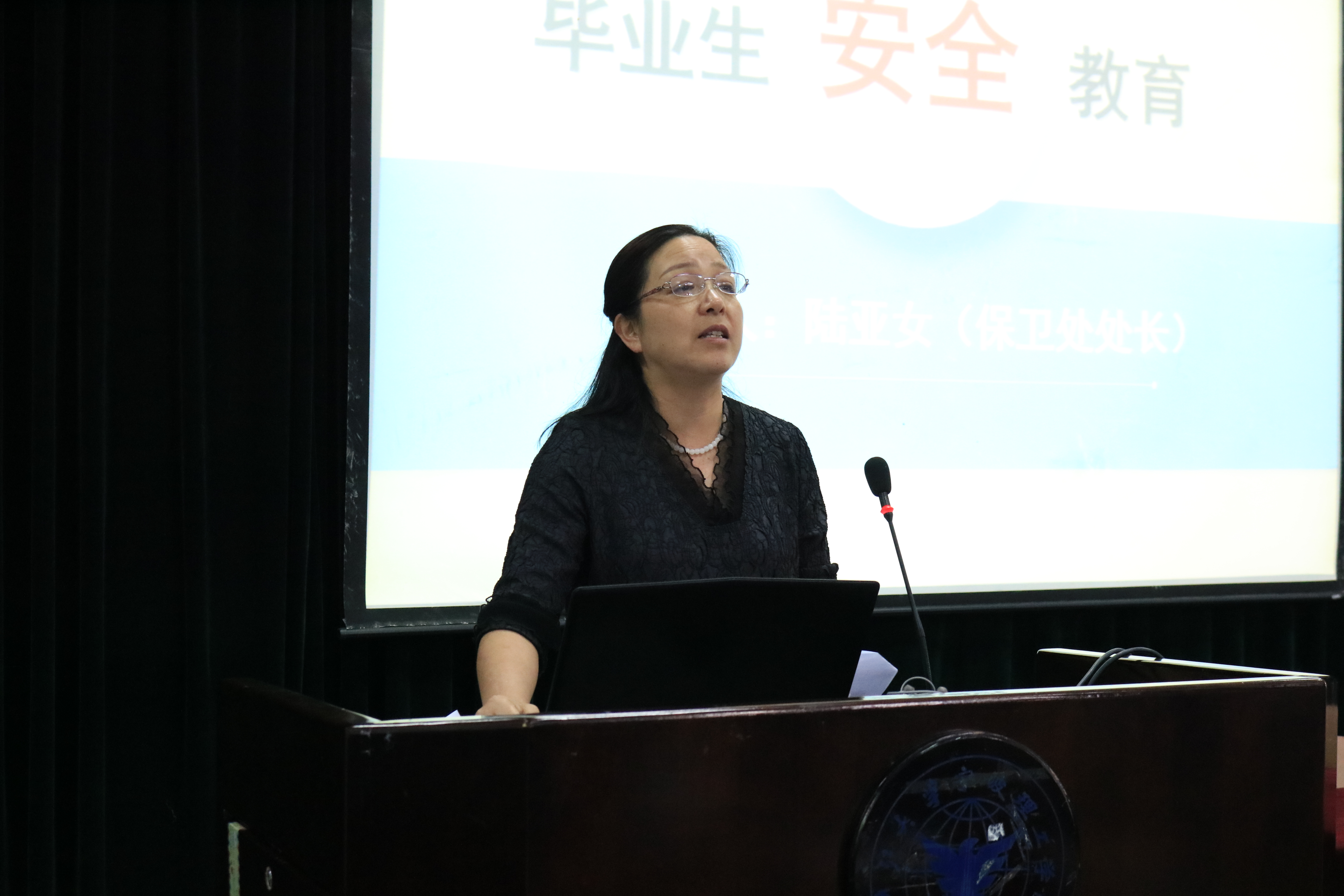 大会伊始,黄院长首先对在座毕业生在校期间取得成绩及对学院的贡献进行了充分肯定及衷心感谢;随后黄院长对在座的毕业生们意味深长的提出了4点期望,期望同学们在毕业季从学业、就业、情感、梦想四个方面好好盘点自己的大学。第一,认真盘点学业,要以追求完美的精神完成大学四年最后的教学环节,不给自己大学四年的学习留下任何遗憾。第二、认真盘点工作,在找工作时不要一味追求着工资高或者是离家近,工作未来的发展,有没有提升的空间,能不能帮助自身更好的提升才是关键。第三,要处理与同学之间的情谊,珍惜大学四年的感情与时光,未来人生之路上,同学间的情谊将弥久珍贵。最后,黄进院长希望同学们不要在年纪轻轻的时候就选择安逸,不要忘记自己曾经的梦想,在这个快速发展的时代,不进则退,应常怀忧患意识。随后,教务办王亚杰老师为大家讲解了毕业设计答辩相关要求和日程安排。就业辅导员杜明珠老师针对毕业季重点工作进行了讲解。最后,保卫处处长陆路亚女老师通过生动的案例讲解,为毕业生们介绍了目前常见的诈骗手段,希望同学们务必要提高警惕,保管自己的财务;另外,在最后离校之际,能理性对待毕业分别,正确处理好与同学间的关系,毕业聚餐做到“情谊到,勿疯狂,安全离校”,上好安全文明离校的最后一课。作为信息学院曾经的班导师,陆老师为在座毕业生送上了真挚的祝福。安全教育环节后,学院党总支副书记傅晓宇对大会进行了总结,强调了学业、就业对于每位毕业未来人生的意义以及对学院人才培养和建设的双重意义,她要求毕业生们就业、学业两手都要硬,都要抓,在提要求的同时傅老师也表达了对毕业生们衷心的祝愿,祝愿各位毕业生学业、事业双丰收。