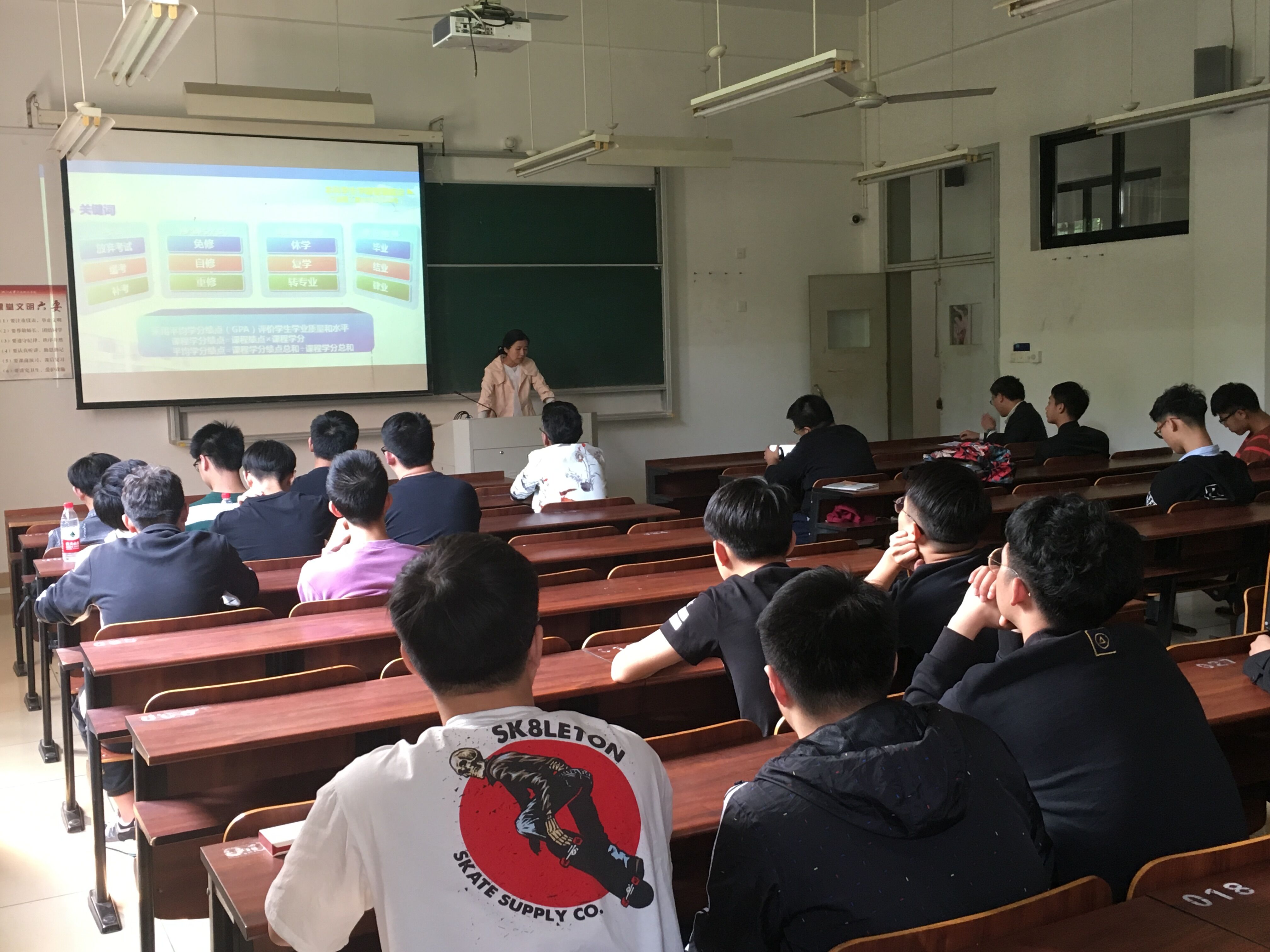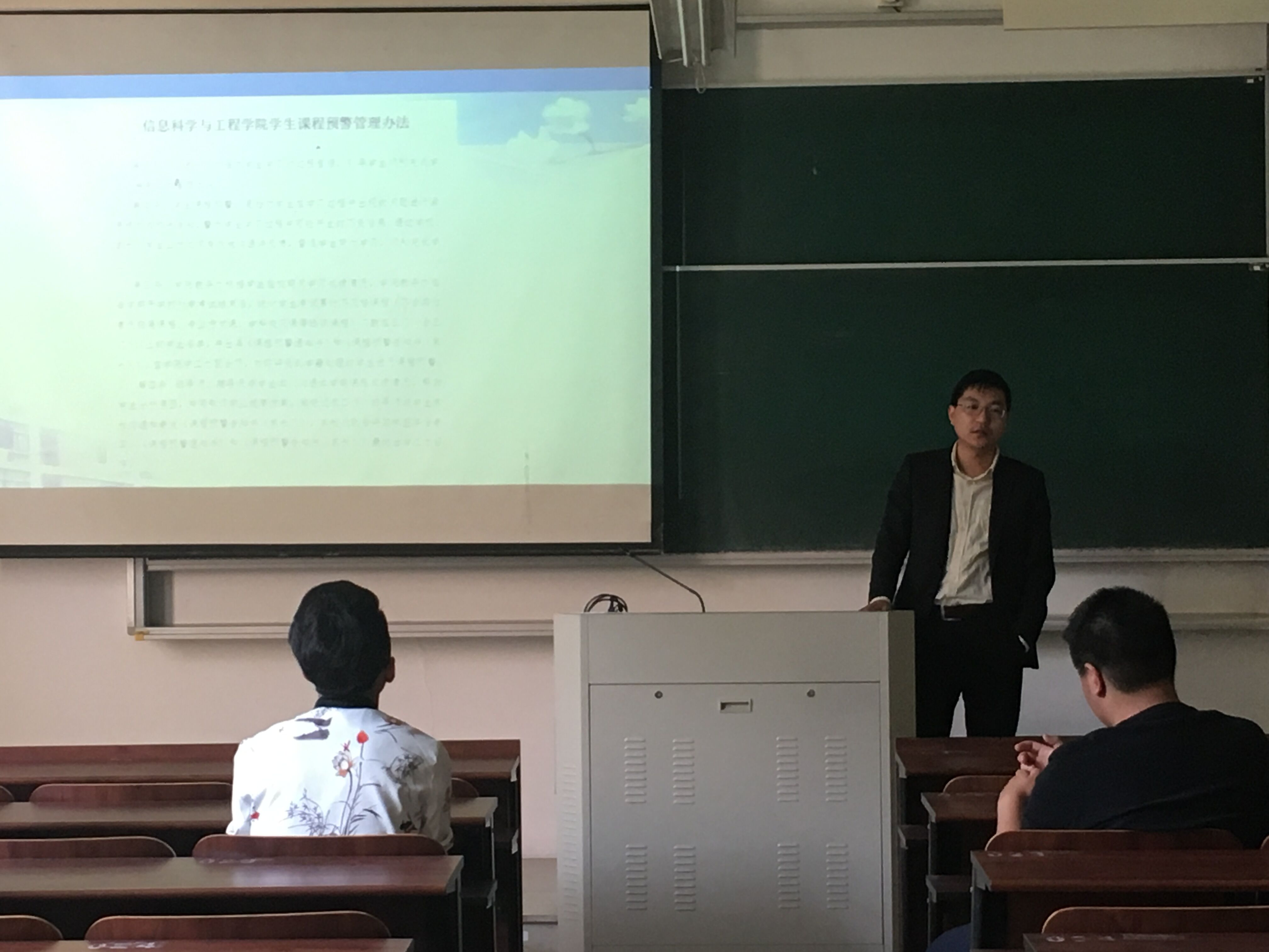 教学教务办王亚杰老师首先就预警相关问题向同学们进行说明,并展示了有关的学籍规定细则。王老师还耐心地向同学们解说了在考试、修课方式、学籍异动等方面的事项,并具体解答了在场同学的疑问。