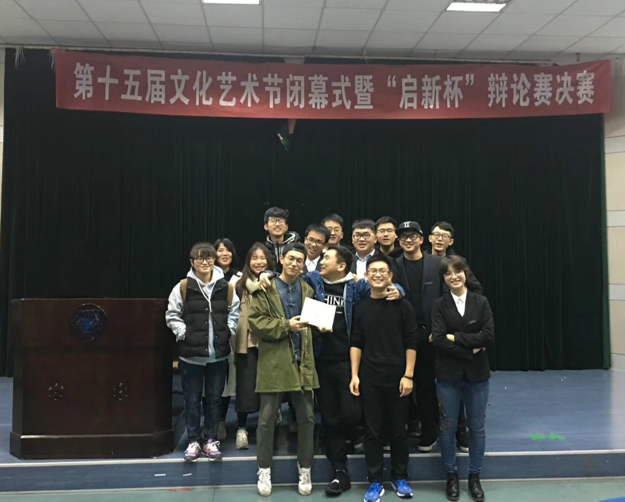 本次“启新杯”辩论赛开始于11月30号,采用淘汰赛制。首轮我院思睿辩论队的对手是实力不俗的商学院,经过一番唇枪舌剑,思睿辩论队获得了第一场比赛的胜利。之后的比赛渐入佳境,先后击败了外国语学院和生化学院进入决赛的冠亚军争夺。冠亚军争夺赛于12月28日在NF103展开,思睿辩论队击败外国语学院获得冠军。思睿辩论队领队苏若波表示:“本次辩论队取得佳绩是全队一起努力的结果,很多大三、大四和已经毕业的学长也参与到这次比赛的备战过程,我也希望思睿辩论队能够延续这股势头在下学期的‘求是杯’辩论赛中再获佳绩。”