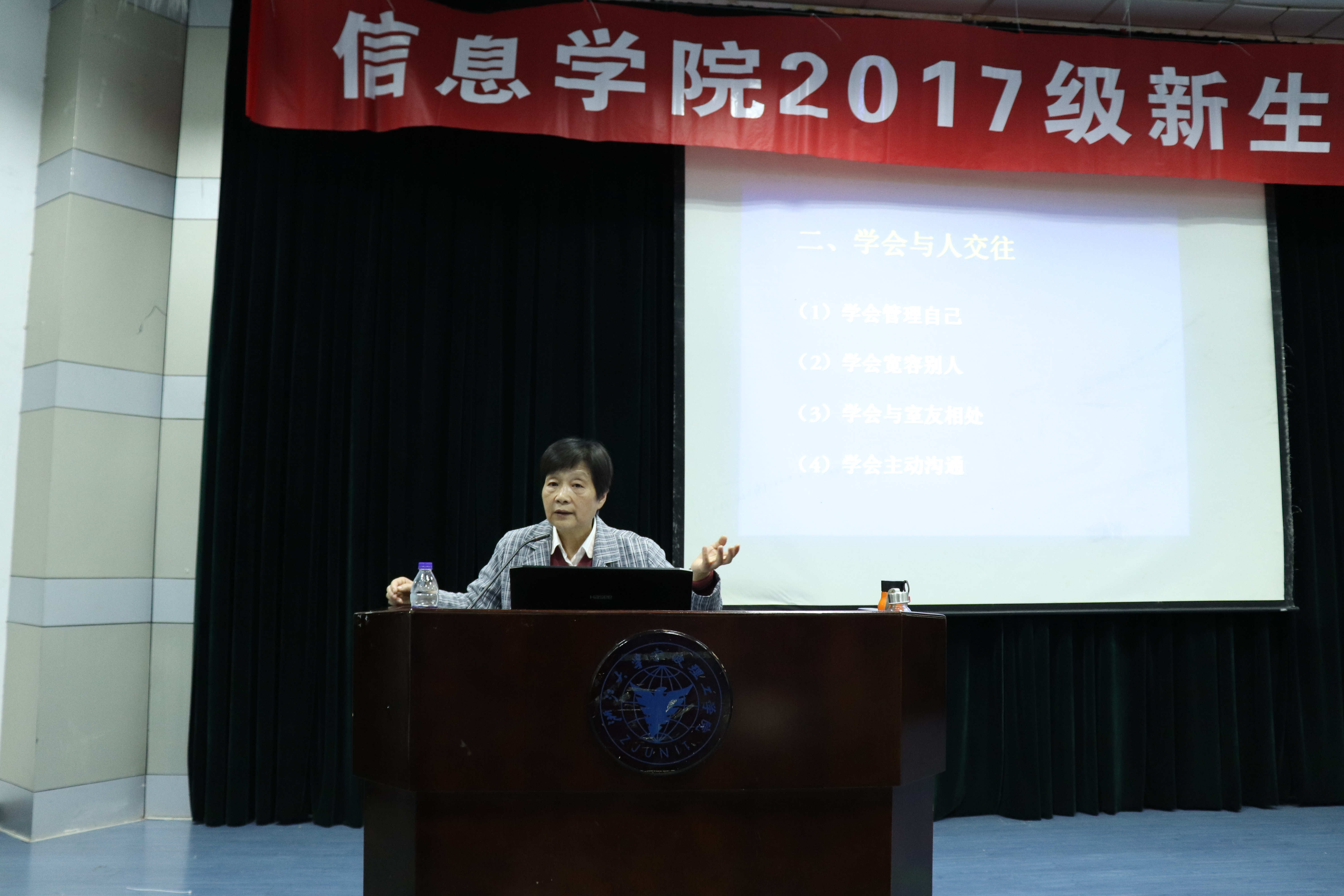 为帮助信息学院全体新生尽快适应大学生活,信息学院于10月31日晚6时整在NF103举办了以“适应大学生活,做最好的自己”为主题的心理讲座,此次讲座由滕崇老师担任主讲人。参加此次讲座的有信息学院党总支副书记傅晓宇老师、信息学院辅导员龚欣欣老师以及全体2017级新生,此次讲座由傅晓宇老师主持。