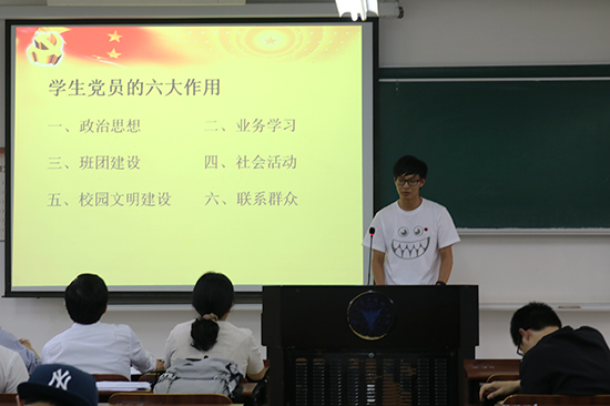 按照此前的抽签顺序,参加此次评选活动的7名党员依次到讲台上做演讲,他们介绍了自己与“党”的关系,从第一份入党申请书开始,到之后的党课培训,这期间所经过的点点滴滴,都从他们的句里行间流露出来,变成了一个又一个励志的故事。其中大家都提到的一点,那就是思想的转变。身为党员,首先得具备优良的道德素质和个人品质,明礼诚信,团结友爱,有坚定的理想信念,富于激情,敢于实践,志存高远。相信他们也是坚信这一点,才能在评选活动中大放异彩。最后,傅老师做了总结讲话,点评了党员的日常事迹,赞扬了他们的奉献精神,希望同学们可以继续努力,将这种精神传递下去。