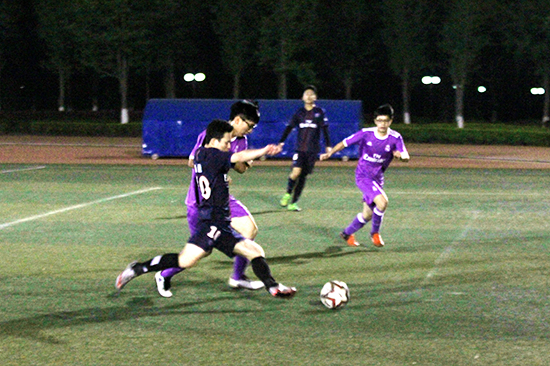 天色已晚,但在比赛中,昏暗的光线丝毫没有影响队员们的发挥。信息学院的队员们激情似火,点燃了全场的热情。信息的战士们热血沸腾,不断进攻,传球精准,快攻激烈,引得场边观众的阵阵掌声和尖叫。上半场比赛结束时,信息学院领先传媒学院。在下半场比赛中,对方队员也渐渐发起攻势,开始追赶比分,此时比赛达到高潮,双方焦灼不下。最终,在信息队员们的精湛脚法和精彩配合下,赢下了最后一个球。队员们相互拥抱,全场奔跑,欢呼着最终的胜利。信息学院夺得本届校足球赛季军的宝座。