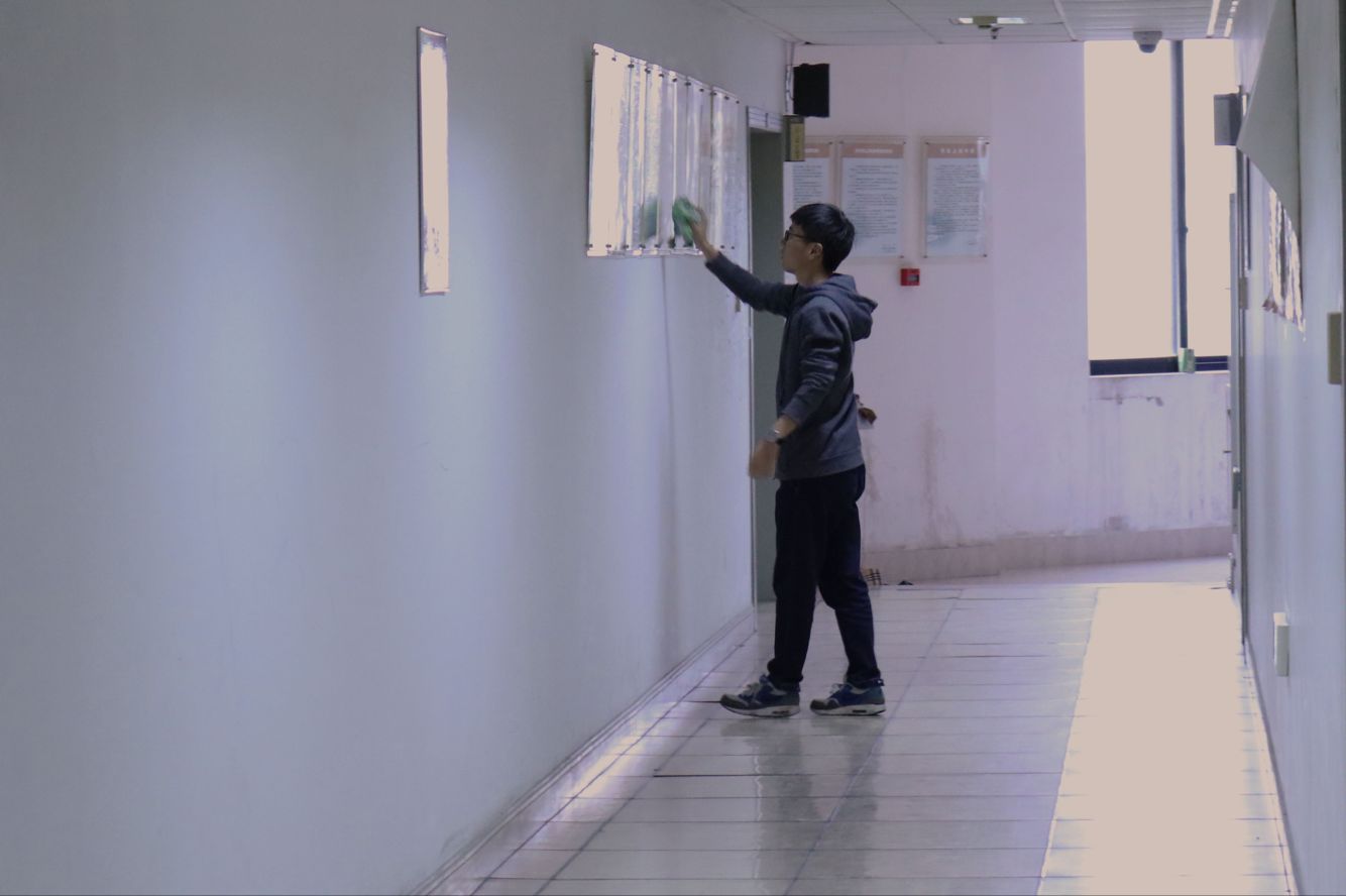 下午两点,信息学院团委学生会干部、干事来到石麟大楼进行清扫活动,同学们按照既定的划分区域分工合作,仔细地清扫各楼层的角角落落,地面夹角、桌椅边缘、玻璃窗棱等死角也不放过,这次活动激发了同学们的服务热情。同时,我们也采访了参加此次活动的朱同学,他已经参与过多次志愿活动。朱同学接受采访时表示,此次志愿活动让他收获良多,利用他的空余时间来做志愿劳动,虽然谈不上无私,但汇聚点点滴滴的志愿劳动,也是作为当代大学生为社会奉献的一种方式。最后,朱同学表示他还会继续参加类似的志愿活动,向雷锋同志学习。