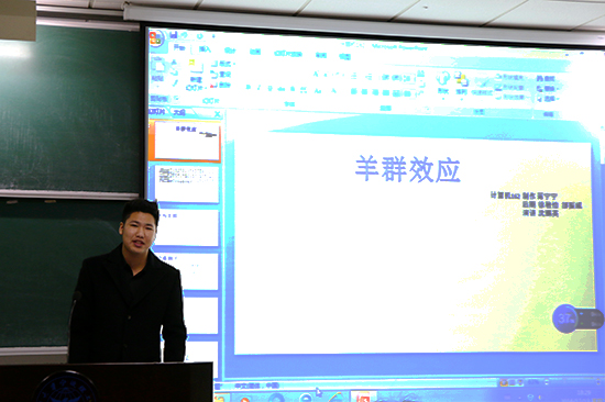 本次竞赛共有八支队伍参加,每个队伍依据抽签题目演讲,后由评委给分,取前四进入半决赛。半决赛每场比赛由两个队伍进行答题对抗赛,积分高者获胜进入决赛。初赛由计算机162班第一个出场,他们抽到的演讲题目是“羊群效应”,162班代表凭借生动的案例、精心的幻灯片赢得了全场掌声。紧接着计算机161的“鸟笼逻辑”、电信163的“二八定律”等班级的演讲都获得全场好评。最后经过各评委打分,进入半决赛的班级分别为计算机161班、计算机162班、电信161班、计算机164班。