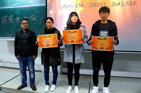 大会开始,主持人对寝室的基本规章准则为同学们进行详细的介绍,包括寝室卫生、寝室氛围、寝室安全。对于寝室安全,主持人着重强调了寝室长晚点名事项,要求寝室长按时完成对寝室成员的晚点名。而后,陈辉老师对寝室卫生做了进一步解释,并强调良好的寝室卫生坏境有助于同学们良好生活习惯、学习习惯的养成。在大会最后的颁奖仪式中, 26幢1-154、20幢213、26幢1-554获得文体特长寝室的奖项,24幢453、28幢1-454、18幢606和18幢605获得优良学风寝室的奖项,其他寝室也相应获得英语天地寝室、爱心互助寝室、骨干示范寝室等奖项。