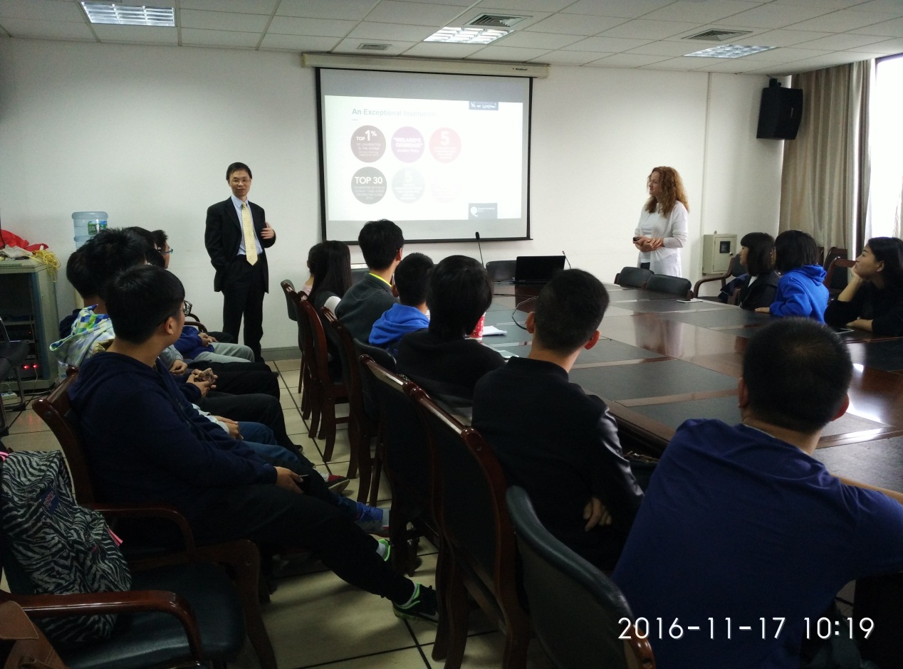 为不断完善与英国女王大学“3+1+1”项目及“4+1”项目的交流合作机制,持续推进信息学院对外开放程度,学院于11月17日下午在SL602举行了英国女王大学交流项目宣讲会。