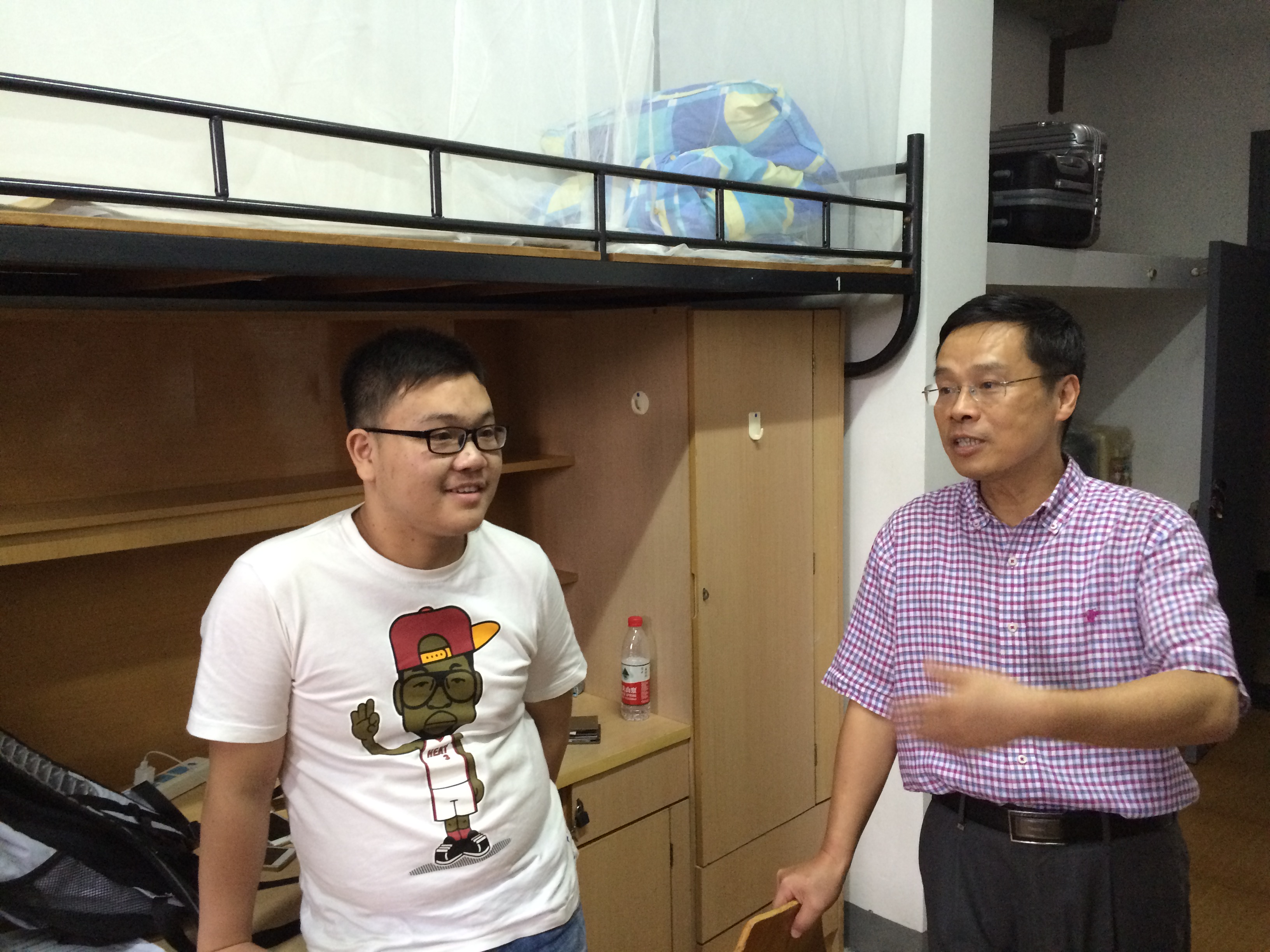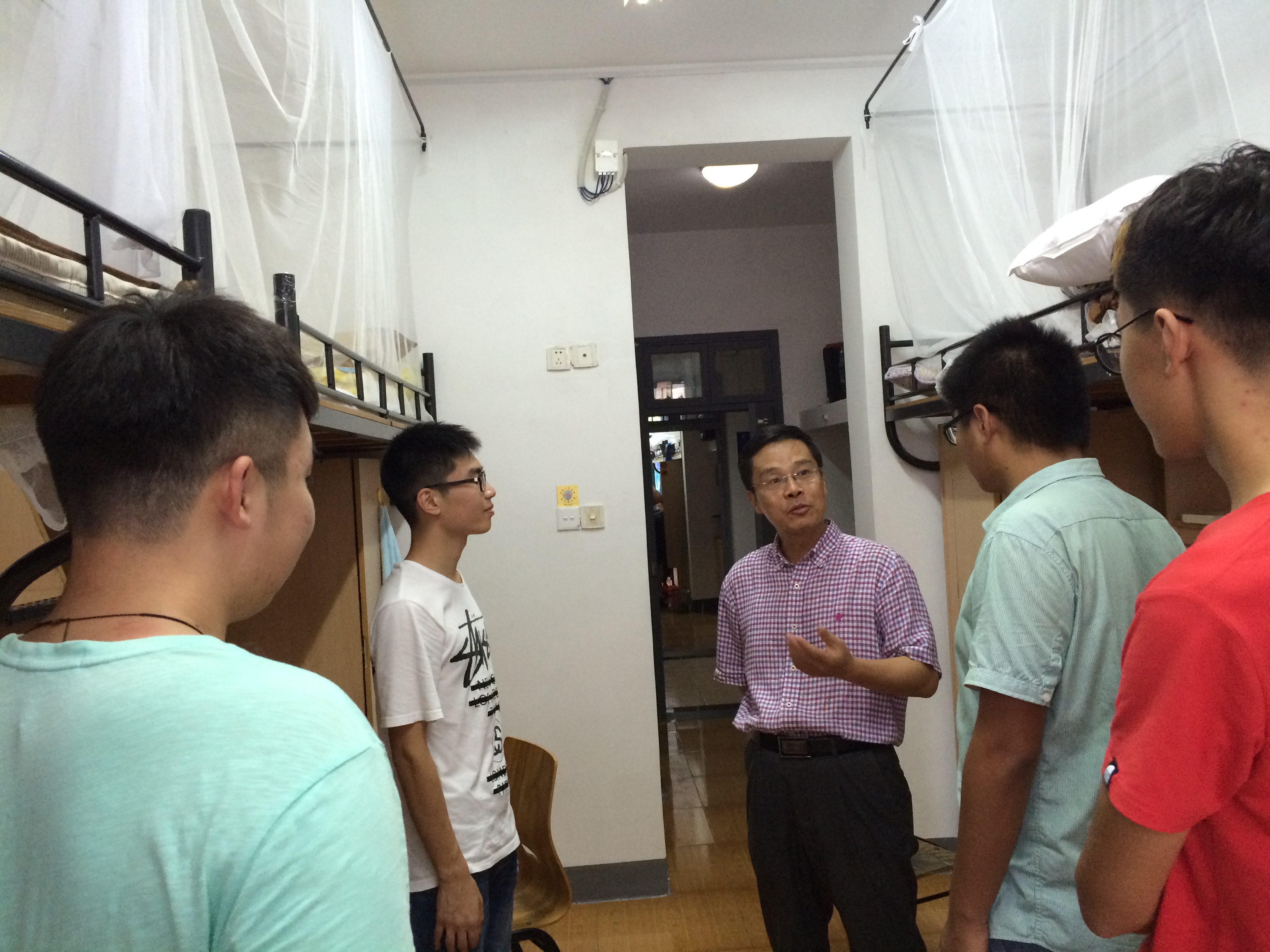 学院领导和老师在新生入学后慰问新生是学院历来传统.2016年9月10日下午4:00信息学院黄进院长、方国娟副院长、张杰副书记及信息学院学工办各位老师前往学院新生所在寝室对新生进行慰问。