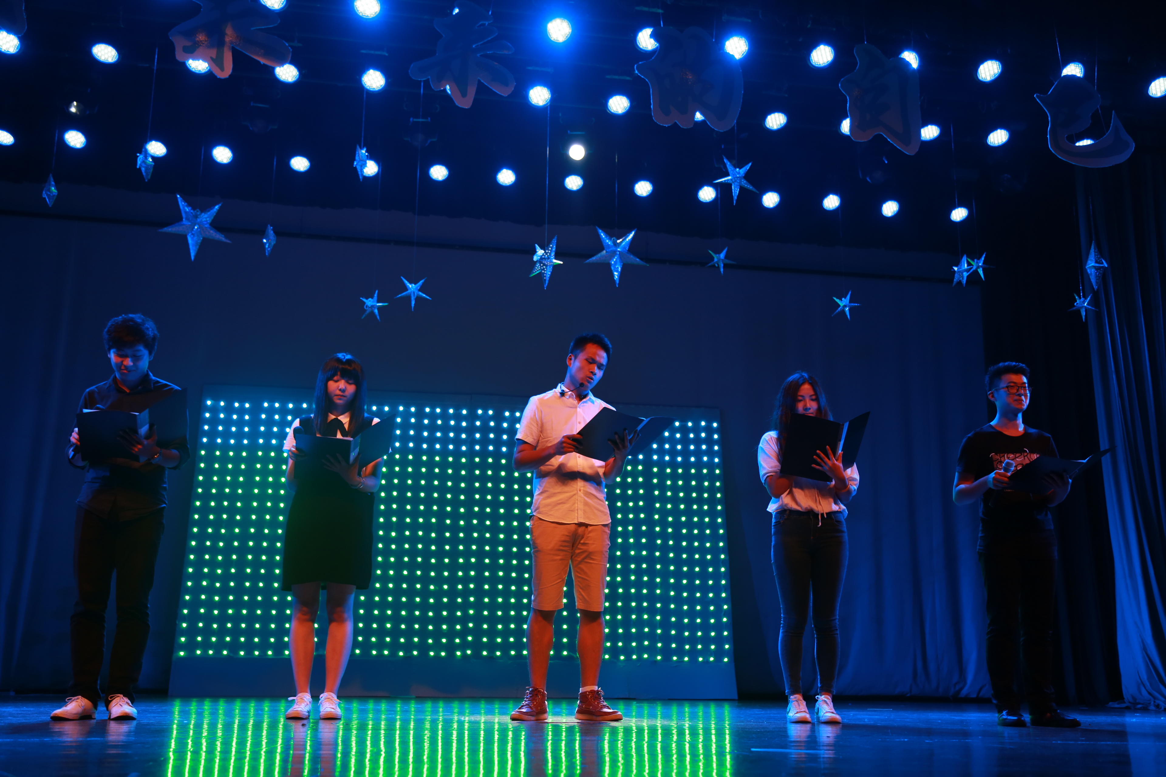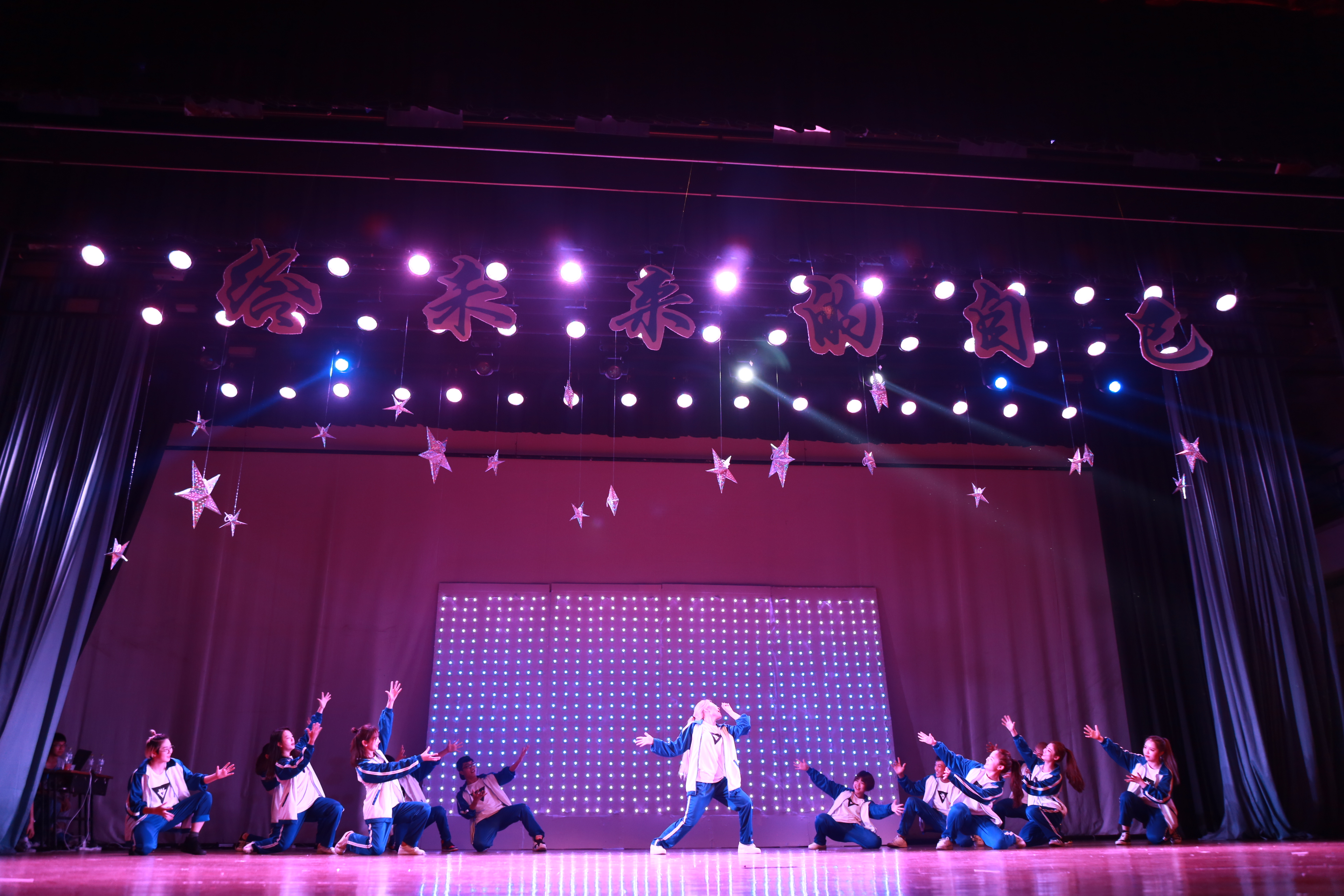 18点30分整,舞台正中央的LED灯大屏幕开始晚会倒计时。全场一片寂静,突然舞台上响起欢快的音乐,疯舞堂的成员给台下的观众带来精彩的开场舞。紧接着主持人致开场词介绍了晚会的第一个节目——《歌曲串烧》。随后,戏曲表演《国色天香》 、看透人心的魔术表演以及惊心动魄的器乐表演和相声表演之后,晚会开始了温情攻势,毕业远在他方学子的祝福视频,以及各班班导师的祝福视频引起毕业生的共鸣。除此之外,学工办的全体老师上台演唱《祝你一路顺风》,简单的旋律却表达对广大莘莘学子的祝愿与不舍。主席团带来的诗朗诵《忆》深刻地表达了他们对校园的留恋。之后屏幕上播出的沈梦莹学姐妈妈的祝福视频,通过几句简单的话语,道出了天下父母的期望。在独唱表演《In my life》结束后迎来了晚会的最高潮——情景剧《给未来的自己》。