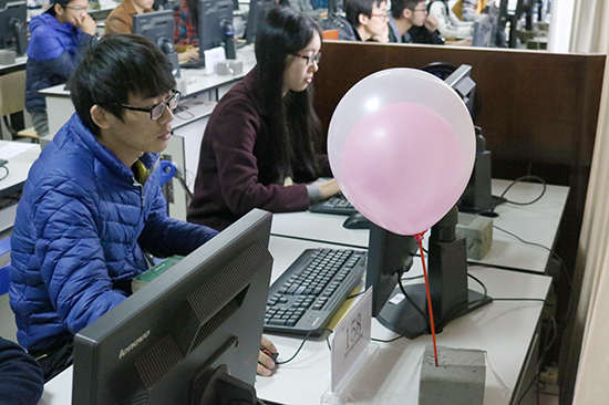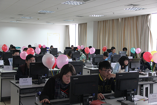 ACM程序设计大赛是传统比赛项目,是极富影响力的电脑程序设计比赛。本次比赛历时4小时,共设置10道题目。每人在正确完成一题后,志愿者将在其位置上升起一只代表该题颜色的气球。比赛一开始,所有参赛同学立刻进入状态,赛场只能听到键盘敲击的声音,这注定是一场没有硝烟的角逐。选手们基础扎实,解题迅速,没过多久,赛场上就插起了不少气球。比赛在4:15顺利结束。