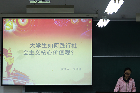 为加强入党积极分子对社会主义核心价值观和党政廉风建设的认识,提高入党积极分子对党的认识与理解,信息学院于11月13日下午3:30在NB108举行了第29期入党积极分子演讲比赛。信息学院思政主管王常青老师、学生党建兼职组织员姜华老师出席了本次演讲比赛,第29期全体入党积极分子和部分党员代表参加了此次比赛。