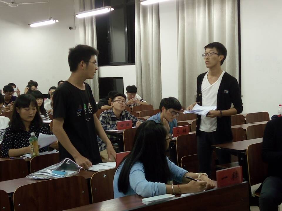 在NB110教室的第二场比赛,同样也没有让在场的评委和观众失望。该轮比赛所争辩的主题是“留学归国是个人问题还是社会问题”,代表出赛的是正方计算机152班,反方信计152班的同学。继正方慷慨激昂、反方充满理性色彩的自我介绍后,比赛进入开篇立论环节。随着计时器的开启,双方辩手严密阐述论证各自队伍的观点。随后的观众提问环节,提问观众和辩手之间的火花碰撞同样令人咋舌。正反双方辩手清晰的思路和巧妙的陈词给观众留下了深刻印象。