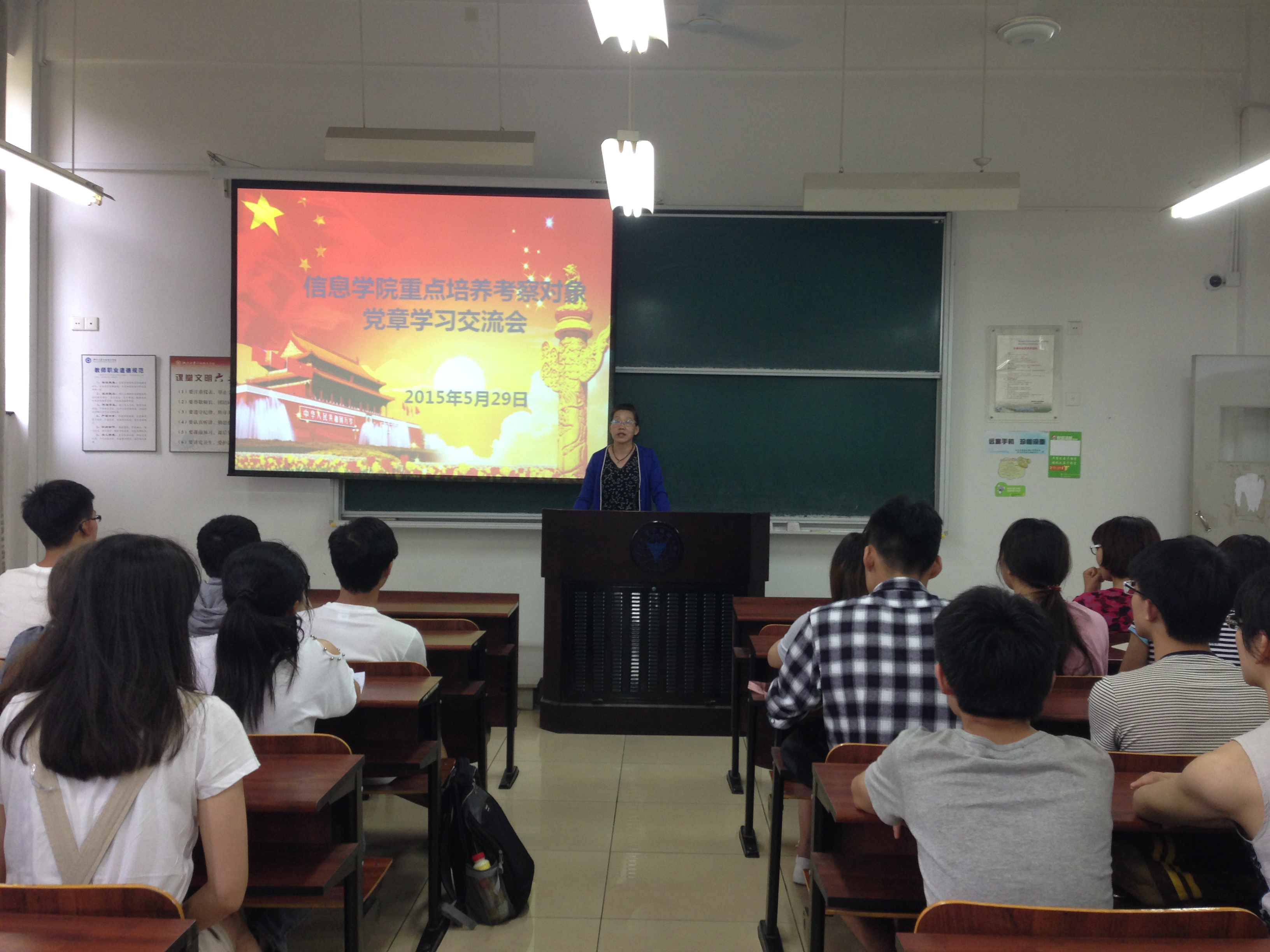 5月29日下午,信息学院重点培养考察对象党章学习交流会在NB112举行。思政主管王常青老师主持了会议,学院党建兼职组织员姜华老师出席了会议。