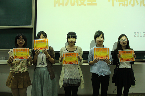 十位寝室代表通过简洁的PPT向大家展示了各自寝室的特色。PPT浓缩了寝室成员一起学习、旅行、整理寝室的镜头,充分展示了寝室魅力。令人印象深刻的是24幢544寝室播放的PPT,一张张整洁的课桌,一本本排列整齐的书本以及生动可爱的墙贴让我们感受到了544寝室浓浓的温馨。544寝室播放的一段由寝室成员自制的短视频诉说着彼此的亲密无间,引来全场阵阵掌声。