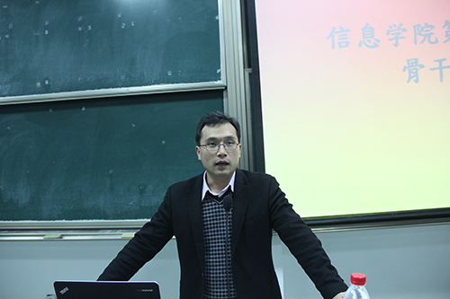 为提高学生干部的综合素质,加强学生干部的业务水平,信息学院于12月1日晚在SF106举办了第十一期团校学生骨干培训班开学典礼暨第一讲。校团委书记应中元老师、学院思政主管王常青老师、学院团委书记邬旭东老师出席了此次开学典礼,学院团委、学生会、社团联合会、青年志愿者协会的副部级以上干部,以及各班班长、团支书参加了此次培训。开学典礼由学院团委副书记马双龙老师主持。
