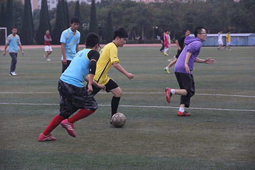 11月21日下午,从学校北操场传来的阵阵加油呐喊声吸引了不少人驻足观望,给原本宁静的校园增添了一份别样的活力——信息学院2014年足球联赛开赛了!