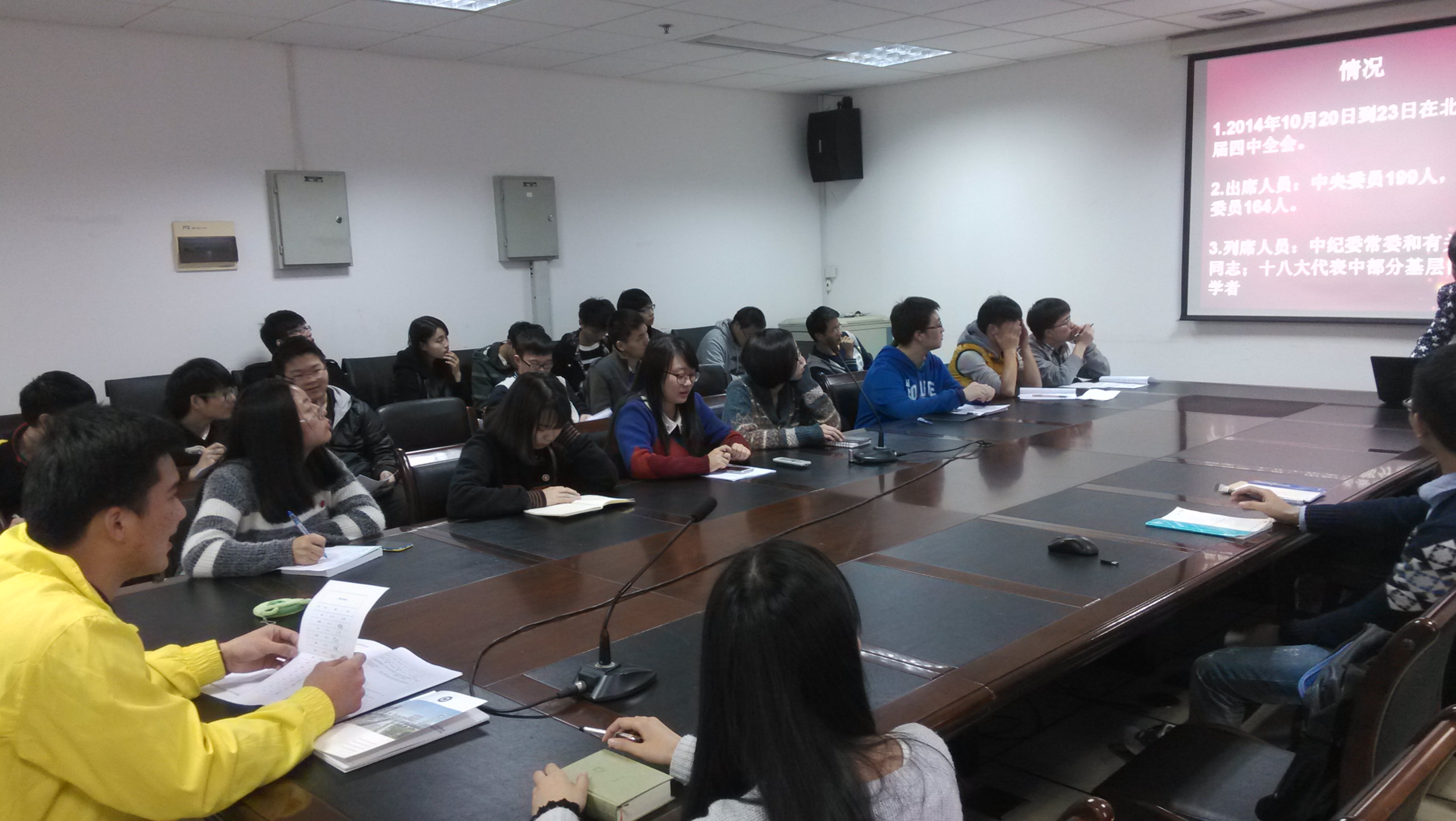 近日,信息学院电气学生党支部十八届四中全会学习讨论会在石麟大楼602会议室举行。电气学生党支部党员和入党积极分子代表参加了学习。