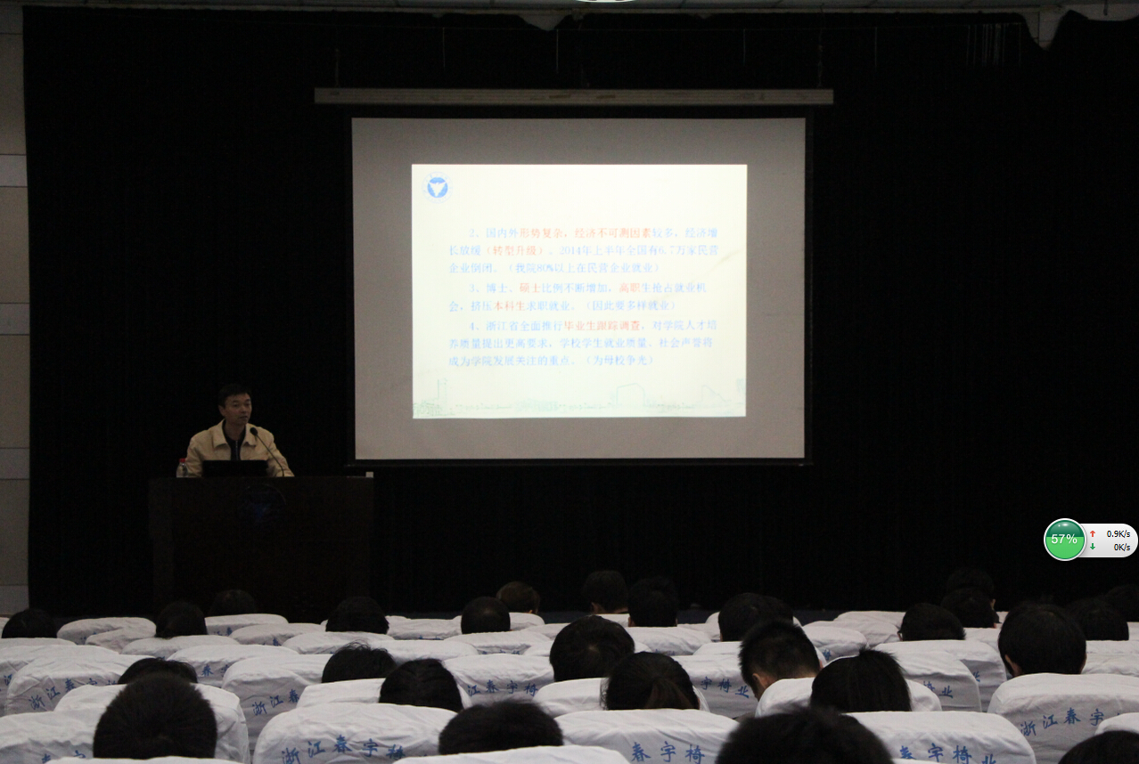 大会上,张杰老师就2015届毕业生就业作了动员讲话。他向2015届毕业生们分析了当前的就业形势,通报了我校和我院近几年的毕业生就业情况,并对2015届毕业生提出了应对当前严峻就业形势的举措和建议,最后还强调了毕业生就业安全注意事项。