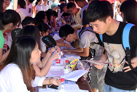 早上7时左右,随着新生陆续来到报道处,迎新活动正式拉开序幕。我院开设一对一跟踪服务,在每位新生报道之后,都会派出志愿者带领新生领取军训服装,寝室钥匙以及水电卡等。所有志愿者对每一个细节都精益求精,在速度与质量两不误的情况下顺利完成任务。迎新期间,记者发现有很多新生都没有家长陪同,他们自己拉着厚重的行李箱,自己打扫房间,每一件事都做得井井有条。迎新活动从早上6点持续到下午5点,志愿者们没有一句抱怨,始终热情的接待每一位新生和家长。
