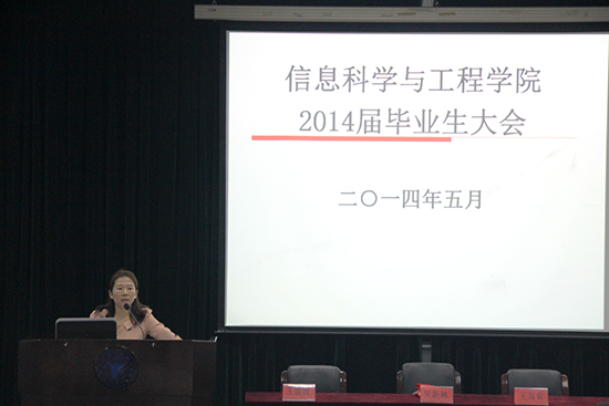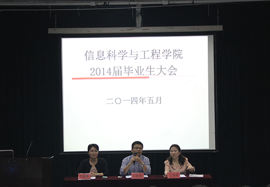 5月15日,信息学院在NF103举办了2014届毕业生大会。学院学工办思政主管吴新林老师、思政副主管王常青老师、教务办副主管王媛媛老师、毕业班班导师以及全体毕业生参加了此次会议。会议由吴新林老师主持。