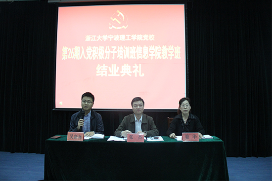 5月9号下午,党校第二十六期入党积极分子培训班信息学院教学班结业典礼于NF103举行。参加本次结业典礼的有信息学院党总支副书记张杰老师,学生党建兼组织员姜华老师,党总支组织委员、思政主管吴新林老师以及党校96名学员。