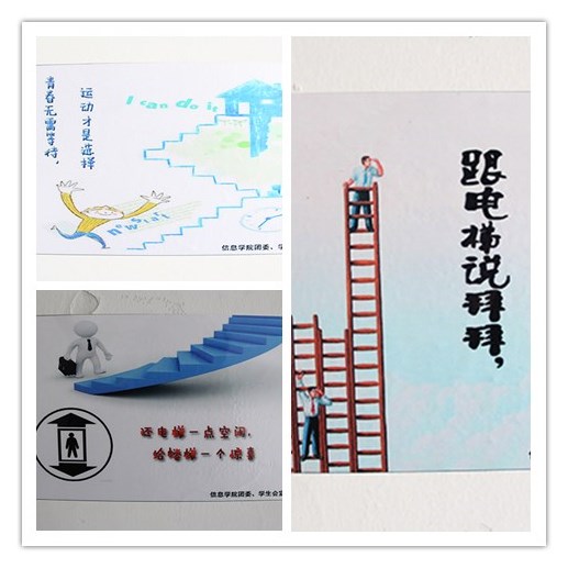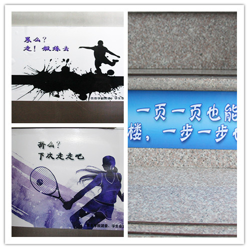 为了促进学生身心健康、体魄强健,引导和帮助大学生激发参加体育锻炼的主观能动性、提升身体素质,并从中磨练坚强意志、培养良好品德和拼搏精神,信息学院团委、学生会于近日开展了体育精神宣传倡议活动。学院精心挑选了宣传体育精神的名人名言,配以幽默、形象的图画,以学生流量较大的石麟大楼为宣传点,在大家经常出入的电梯、楼梯、实验室等进行张贴,获得了广大老师和学生的关注,同学们参与运动的积极性也得到了提高。