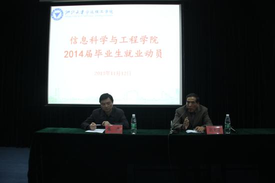 为营造良好的就业氛围,推动就业工作进程,信息学院于11月12日下午在NF103召开2014届毕业生就业动员大会。学院院长赵光宙,党总支副书记张杰,各研究所负责人,全体毕业班班导师,教务、学工相关教师以及2014届全体毕业生参加了大会。