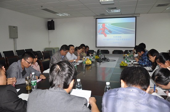 2013年10月17日下午,在石麟大楼602会议室,召开了信息学院2014届研究生毕业生就业座谈会。学校就业指导与服务中心副主任廖海鹏老师、信息学院副院长胡超教授、信息学院分管就业工作的王常青老师以及学院科研秘书王亚杰老师出席了会议并分别就研究生就业过程中出现的问题和注意事项进行了讲解与座谈。